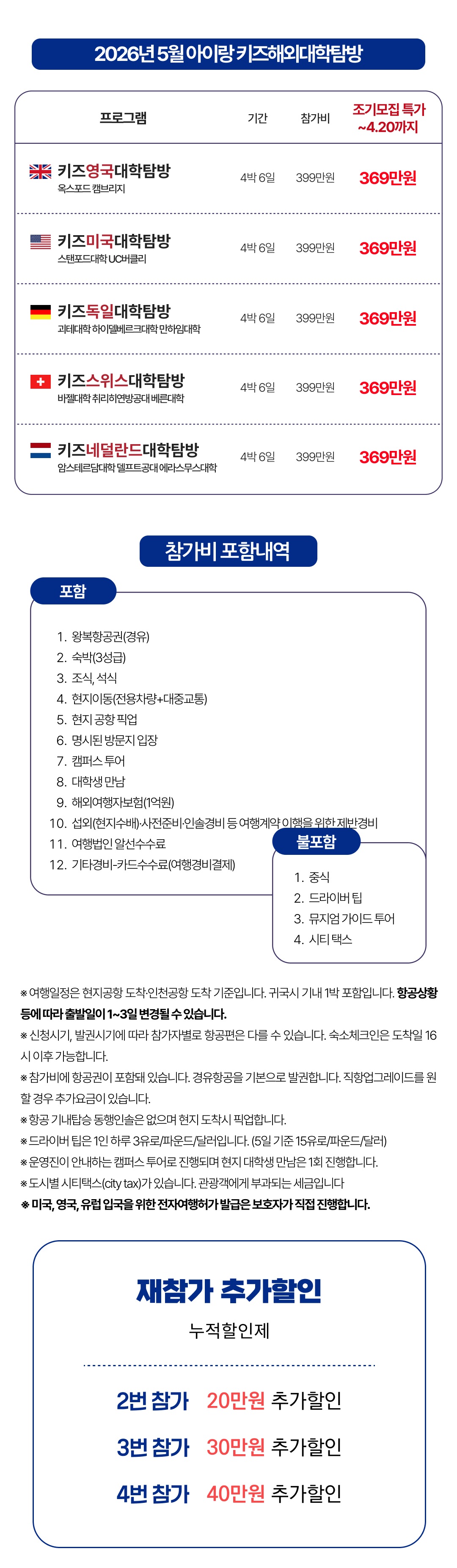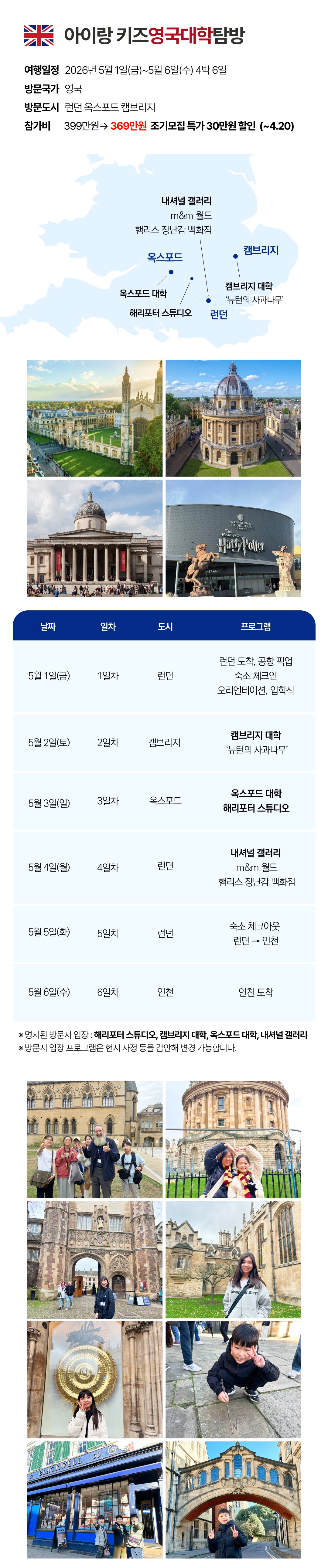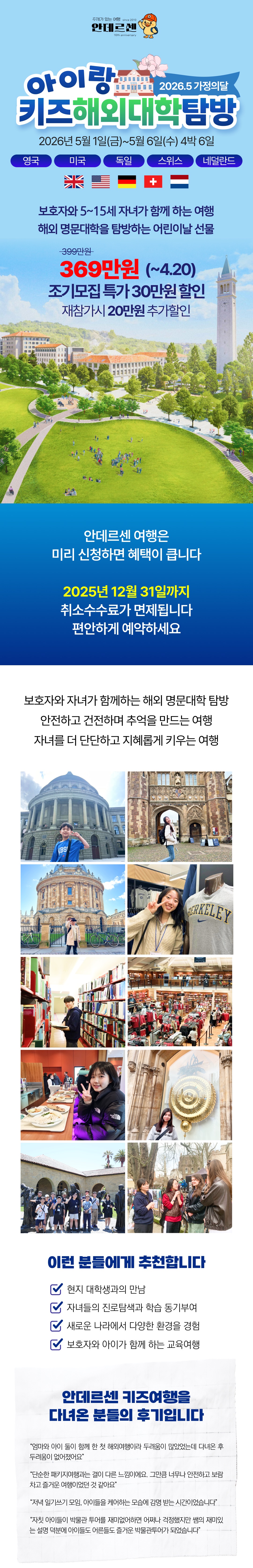 [2026년 5월] 가정의달 아이랑 키즈해외대학탐방