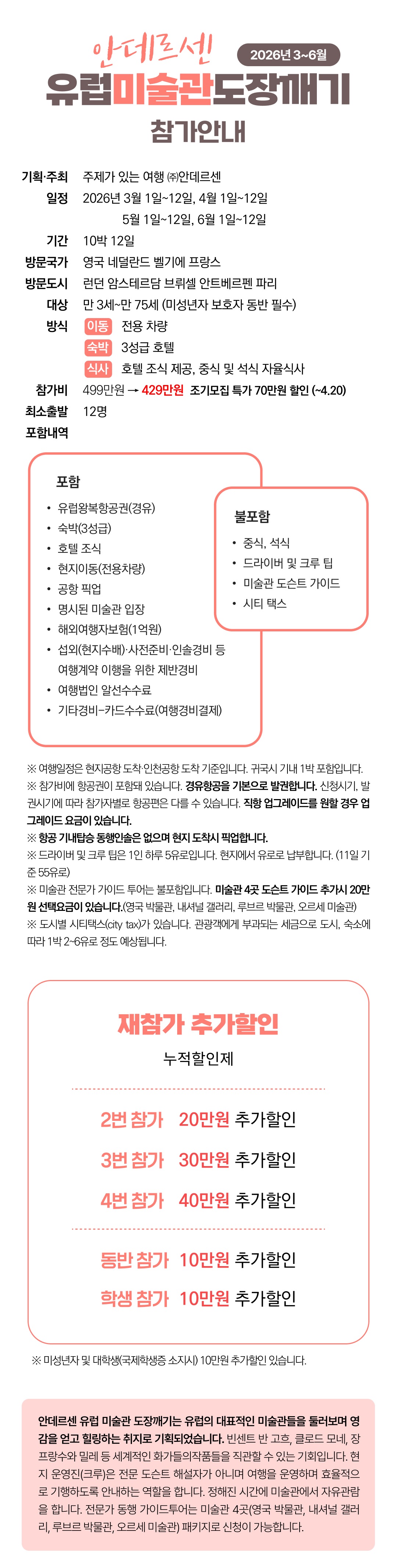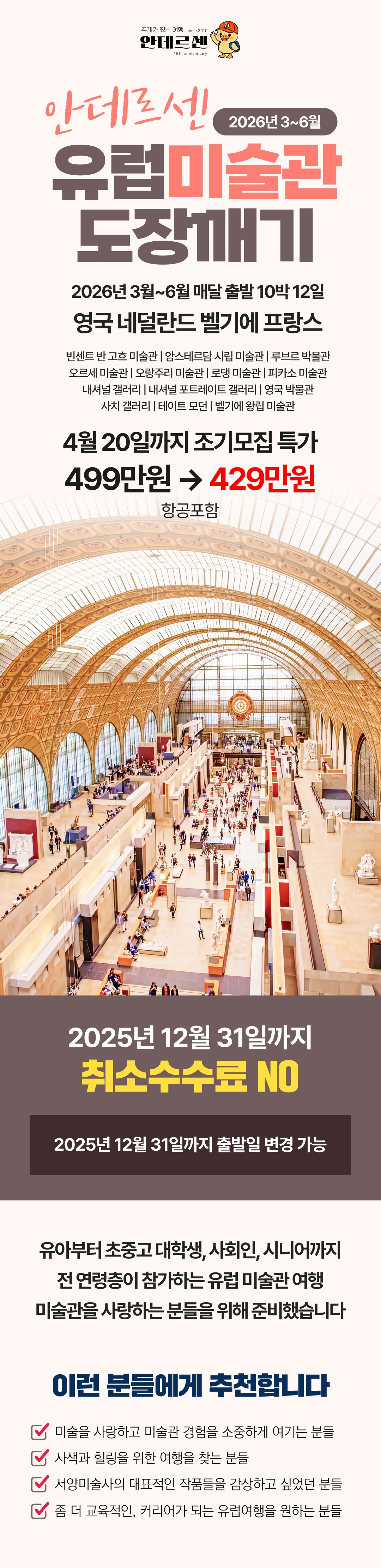 [2026년 3~6월] 매달출발 유럽미술관도장깨기