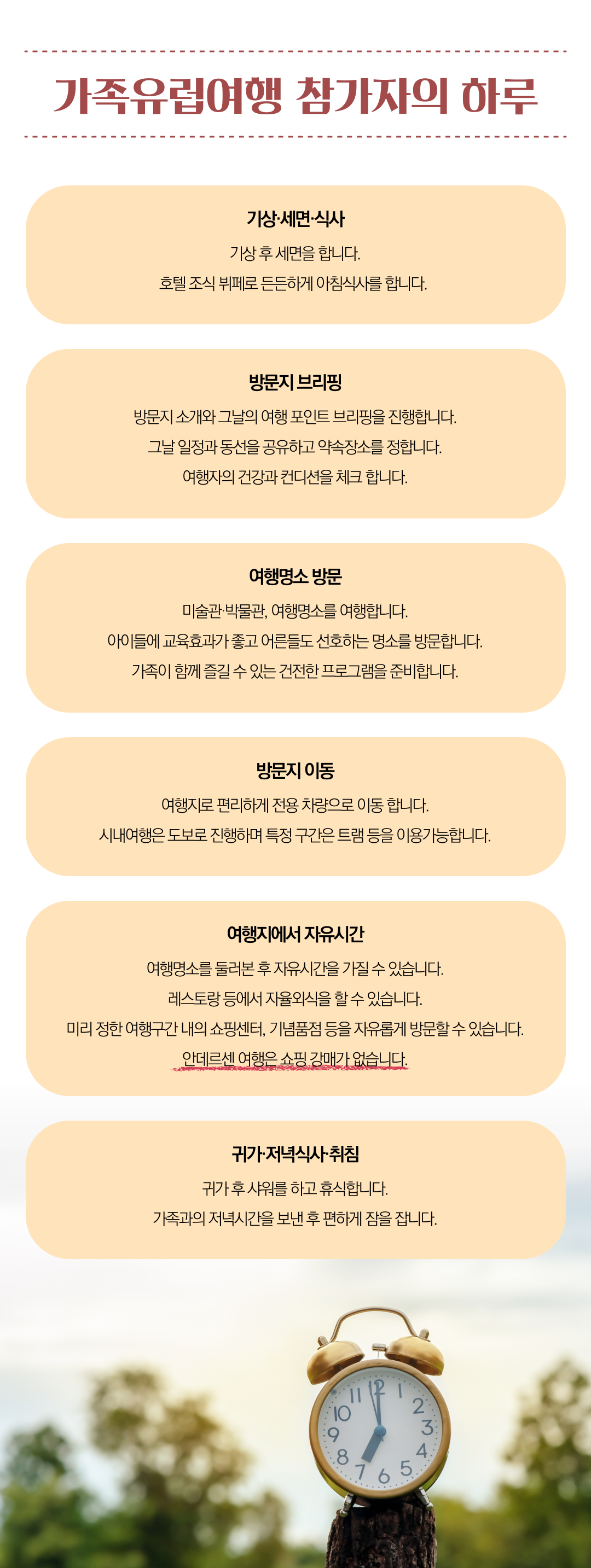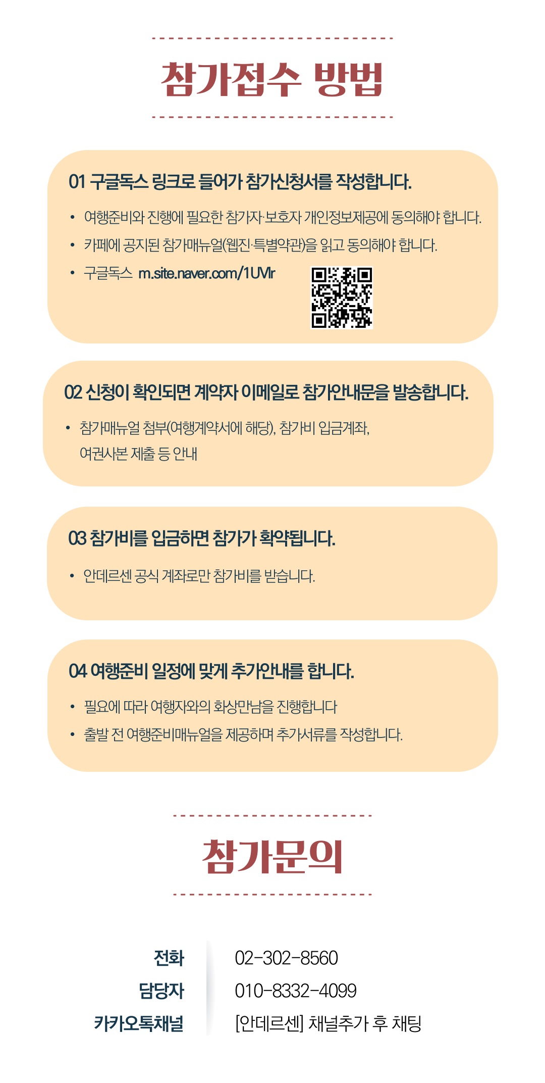 상세한 여행준비를 위해 구글 참가신청서를 작성해주셔야 합니다. 구글독스 참가신청서를 작성하지 않으면 정상적으로 예약이 접수되지 않습니다. 클릭하면 바로 구글 참가신청서로 연결됩니다.