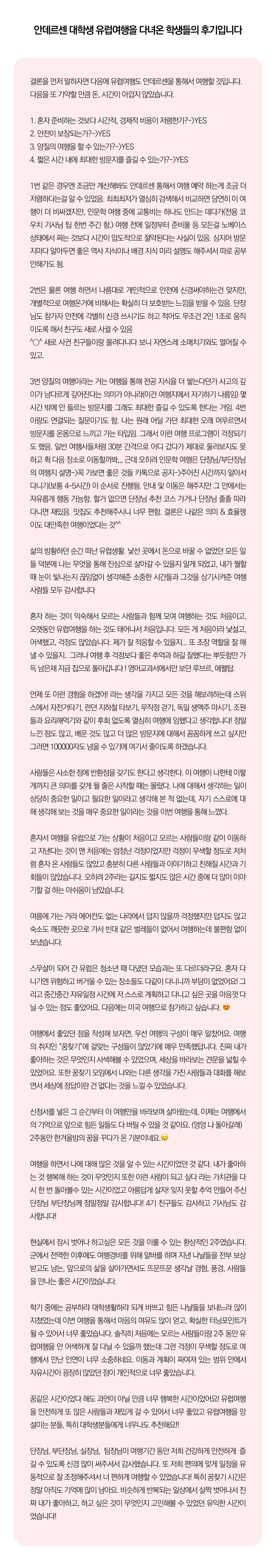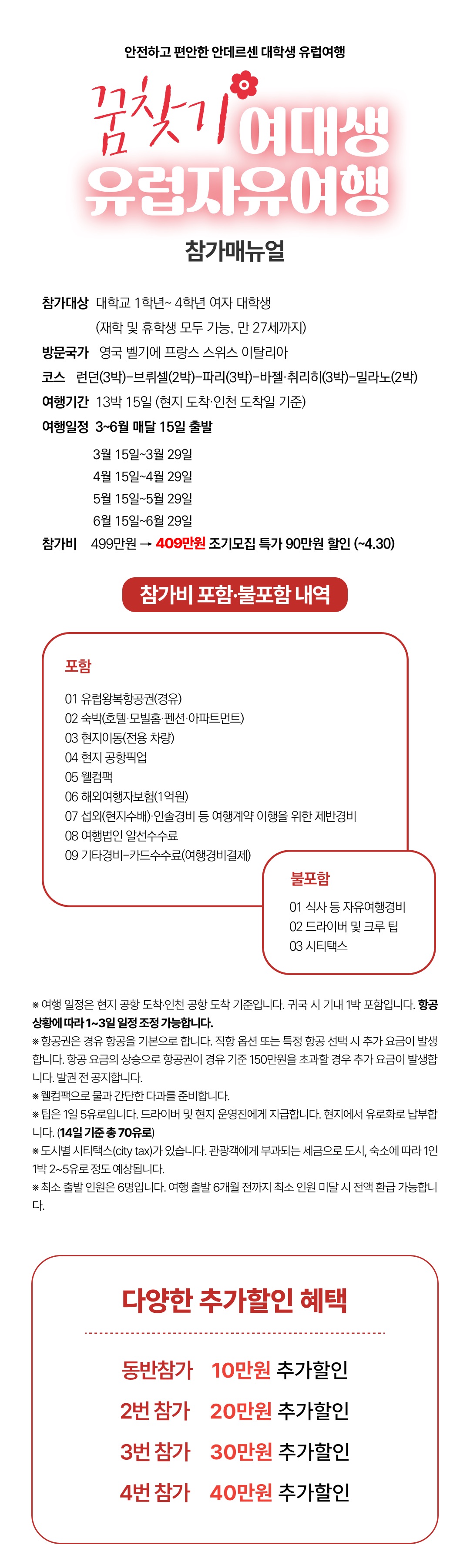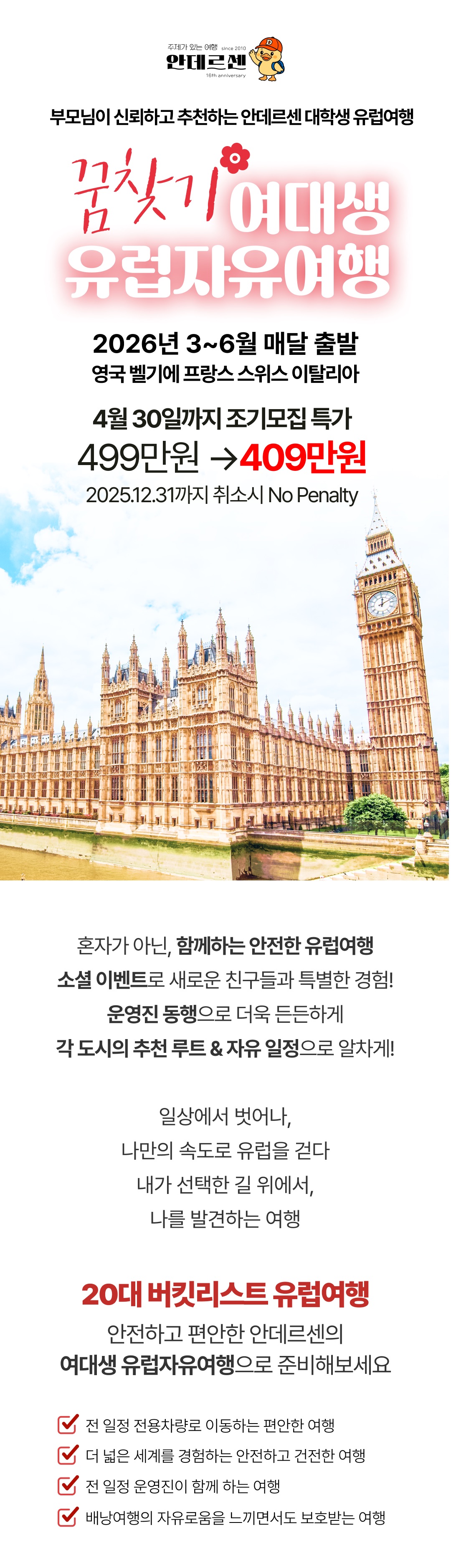 [2026년 3~6월] 매달출발 꿈찾기 여대생 유럽자유여행