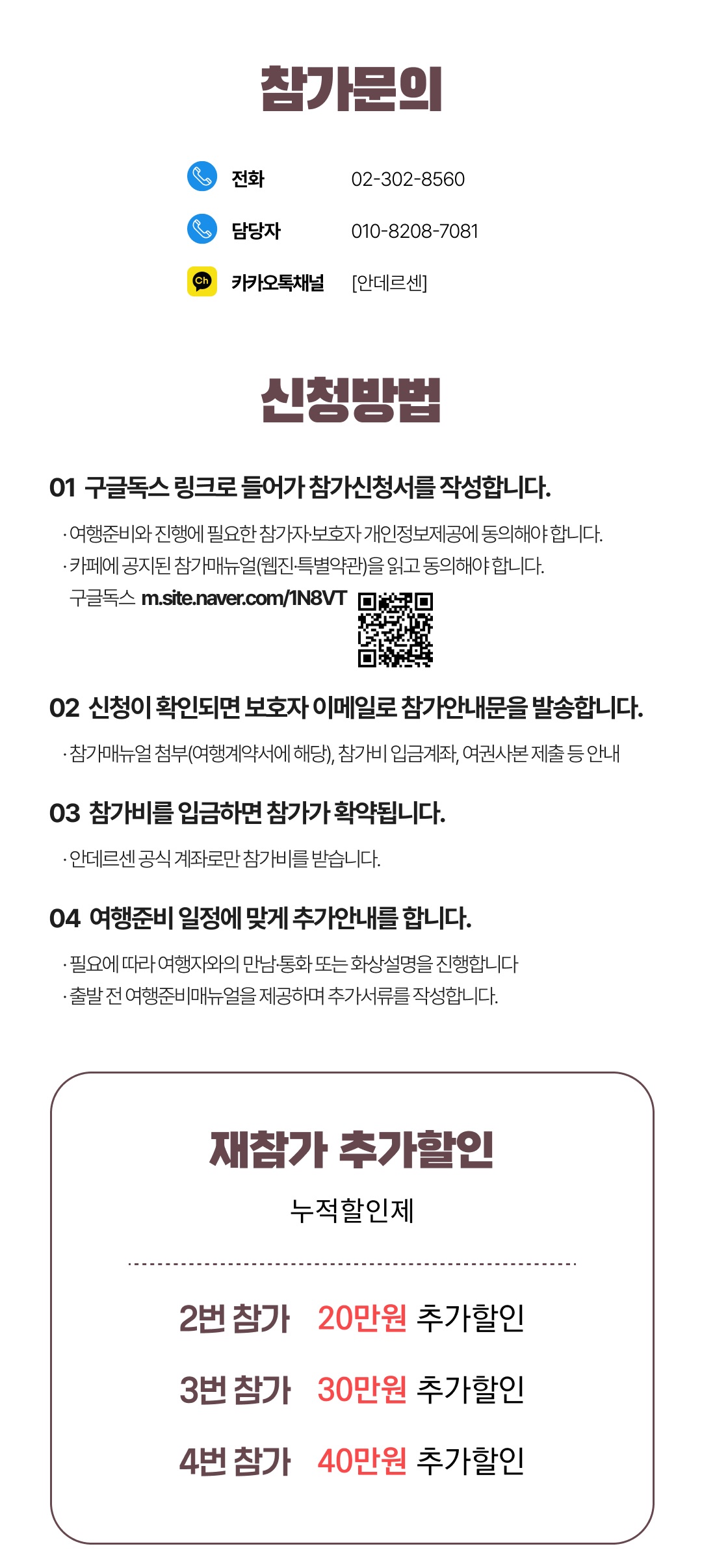 상세한 여행준비를 위해 구글 참가신청서를 작성해주셔야 합니다. 구글독스 참가신청서를 작성하지 않으면 정상적으로 예약이 접수되지 않습니다. 클릭하면 바로 구글 참가신청서로 연결됩니다.