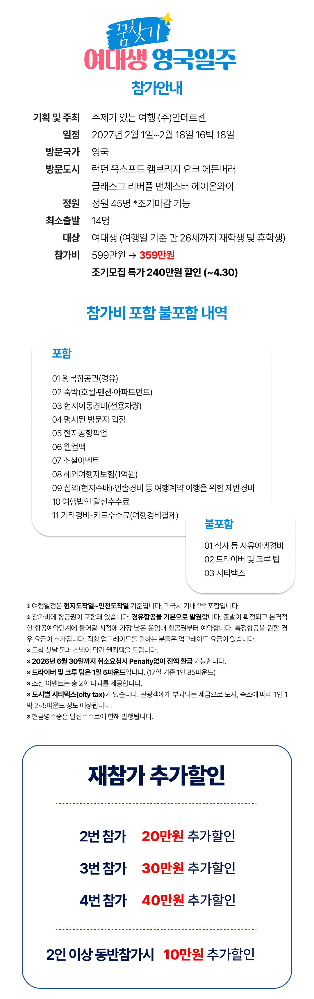[2027년 2월] 꿈찾기 여대생 영국일주