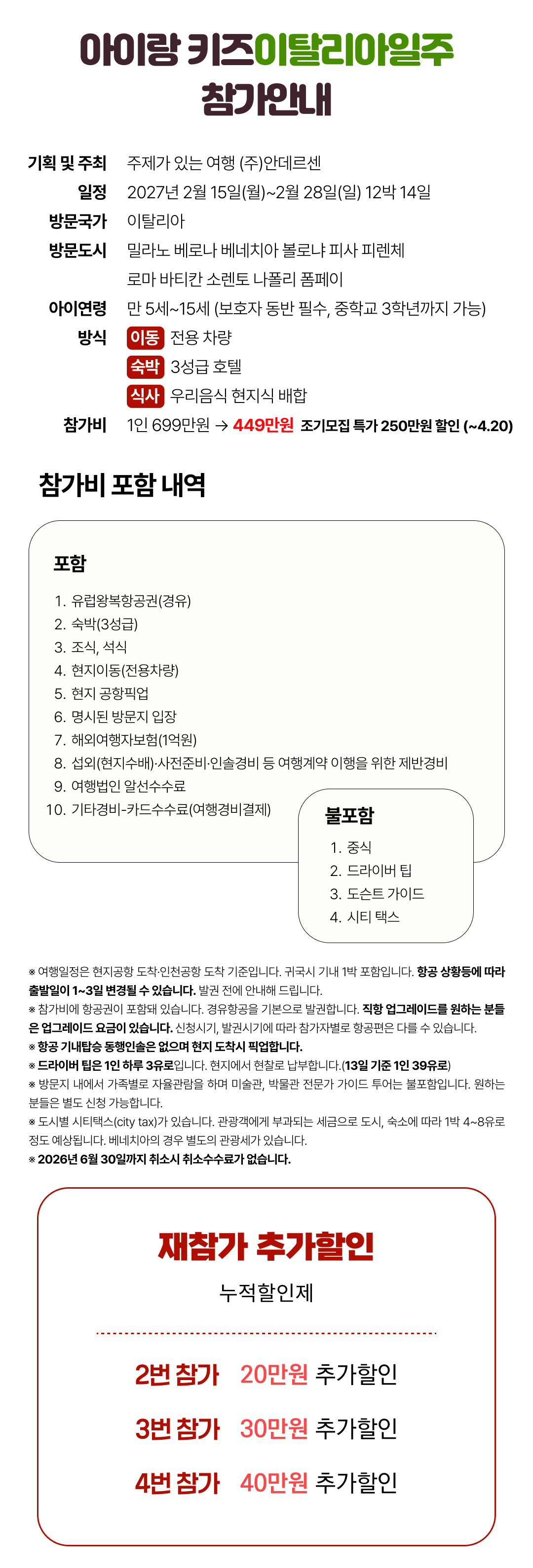 [2027년 2월] 아이랑 키즈이탈리아일주