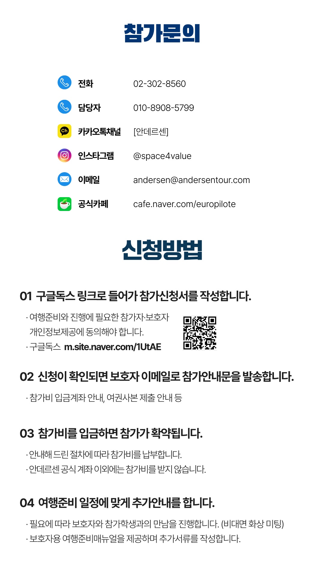 상세한 여행준비를 위해 구글 참가신청서를 작성해주셔야 합니다. 구글독스 참가신청서를 작성하지 않으면 정상적으로 예약이 접수되지 않습니다. 클릭하면 바로 구글 참가신청서로 연결됩니다.