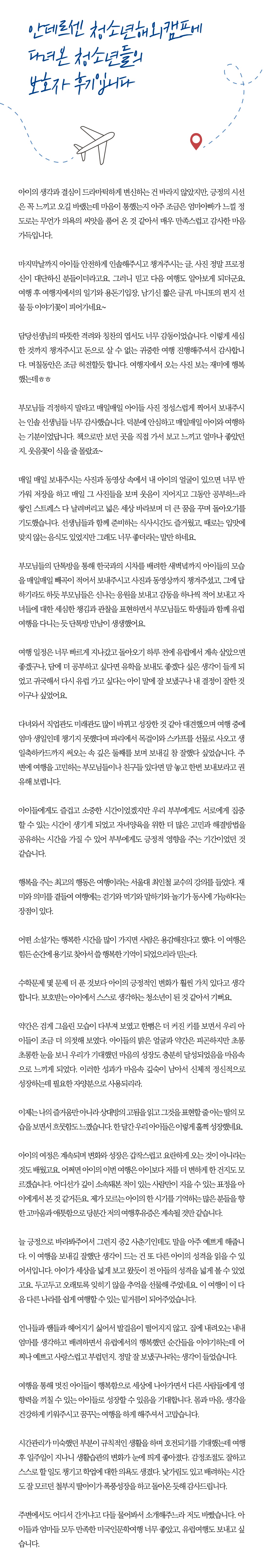 상세한 여행준비를 위해 구글 참가신청서를 작성해주셔야 합니다. 구글독스 참가신청서를 작성하지 않으면 정상적으로 예약이 접수되지 않습니다. 클릭하면 바로 구글 참가신청서로 연결됩니다.