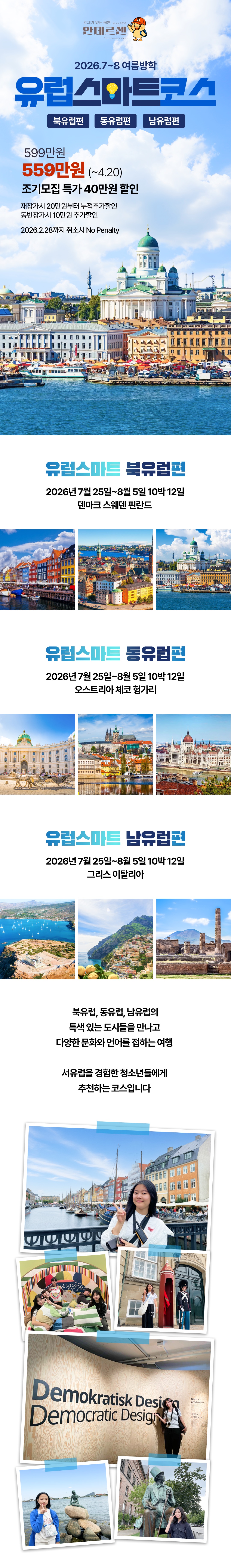 [2026년 7~8월] 유럽 스마트코스 (북유럽/동유럽/남유럽)