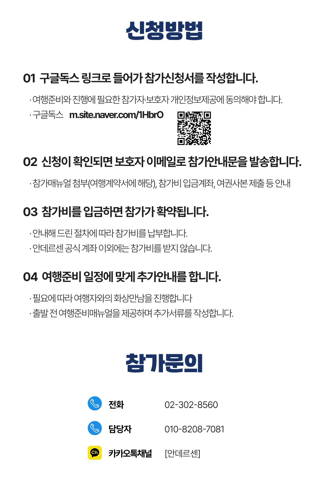 상세한 여행준비를 위해 구글 참가신청서를 작성해주셔야 합니다. 구글독스 참가신청서를 작성하지 않으면 정상적으로 예약이 접수되지 않습니다. 클릭하면 바로 구글 참가신청서로 연결됩니다.