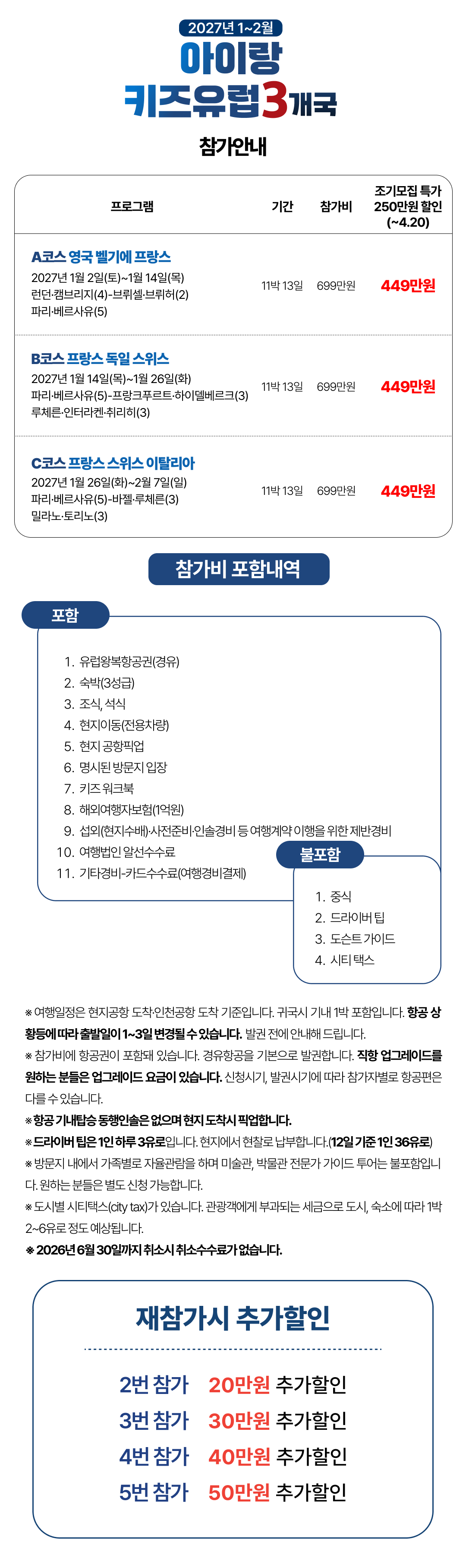 [2027년 1~2월] 아이랑 키즈유럽3개국