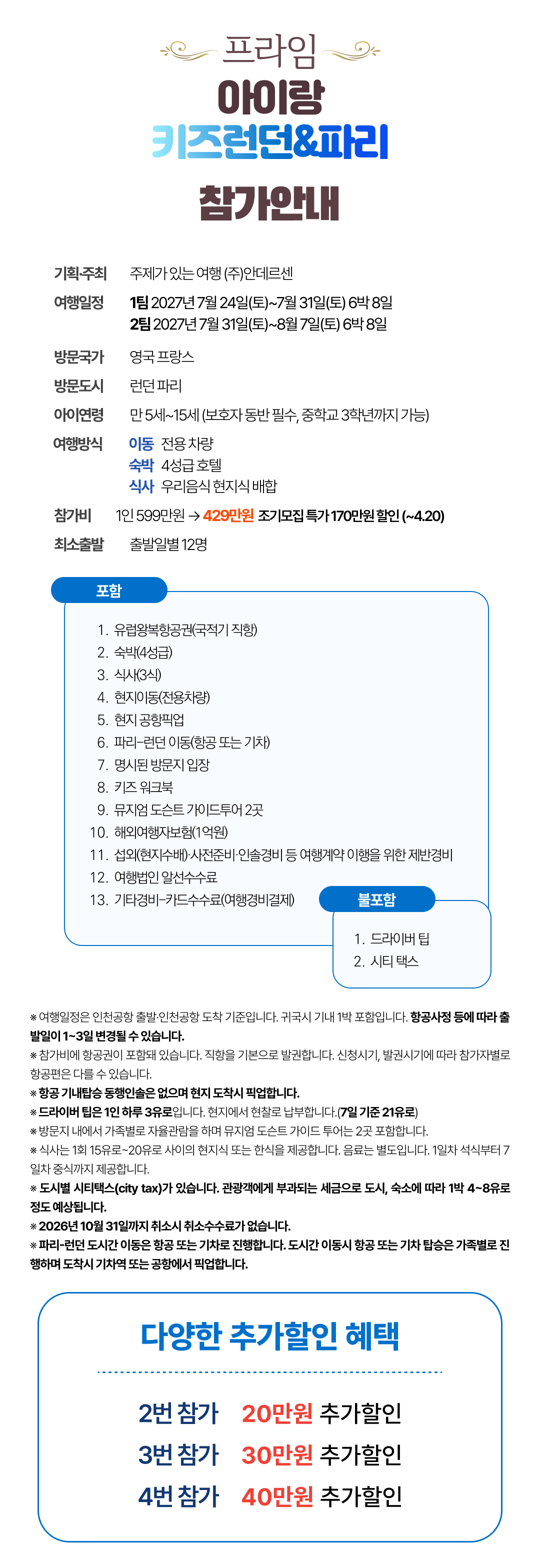 [2027년 7~8월] 프라임 아이랑 키즈 런던&파리