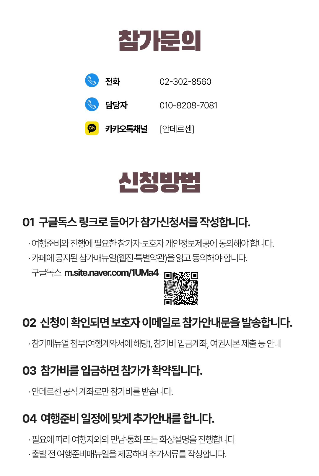 상세한 여행준비를 위해 구글 참가신청서를 작성해주셔야 합니다. 구글독스 참가신청서를 작성하지 않으면 정상적으로 예약이 접수되지 않습니다. 클릭하면 바로 구글 참가신청서로 연결됩니다.