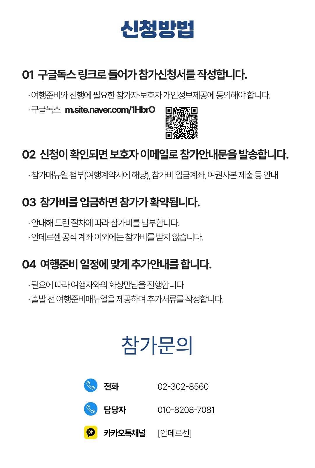 상세한 여행준비를 위해 구글 참가신청서를 작성해주셔야 합니다. 구글독스 참가신청서를 작성하지 않으면 정상적으로 예약이 접수되지 않습니다. 클릭하면 바로 구글 참가신청서로 연결됩니다.