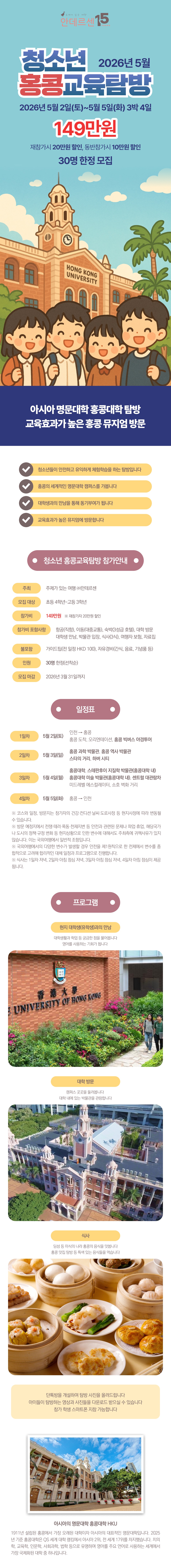 [2026.5] 청소년 홍콩교육탐방 30명 한정 모집