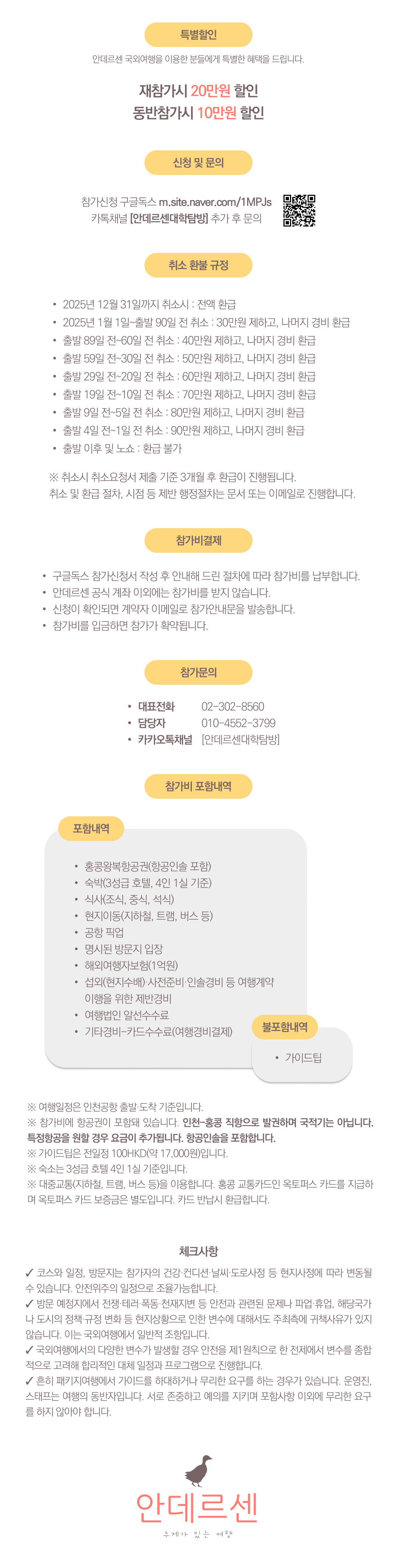 상세한 여행준비를 위해 구글 참가신청서를 작성해주셔야 합니다. 구글독스 참가신청서를 작성하지 않으면 정상적으로 예약이 접수되지 않습니다. 클릭하면 바로 구글 참가신청서로 연결됩니다.