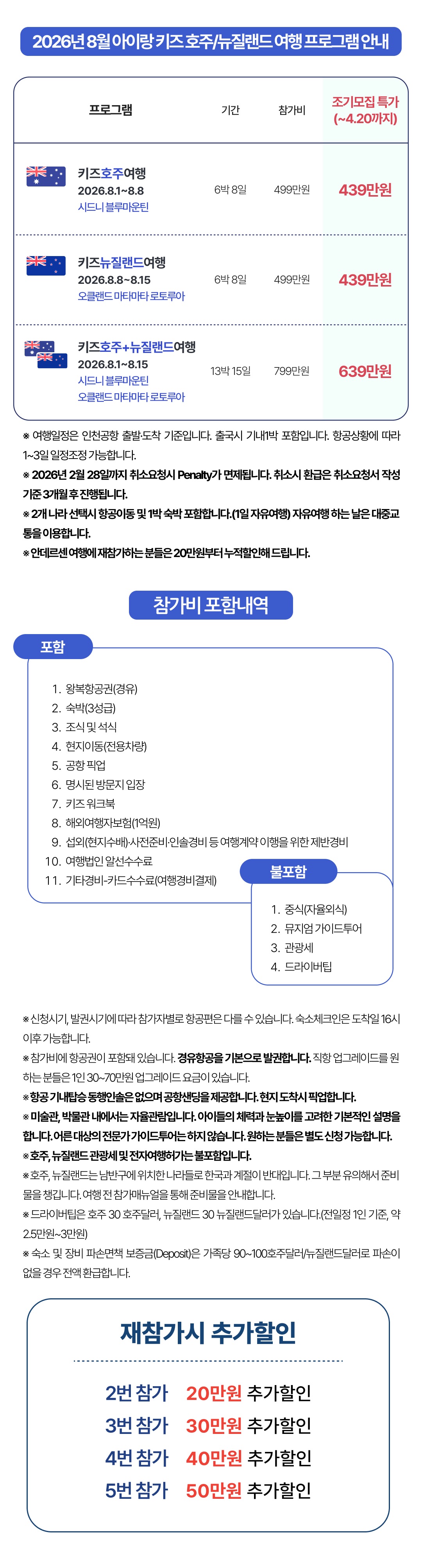[2026년 8월] 아이랑 키즈호주/뉴질랜드여행