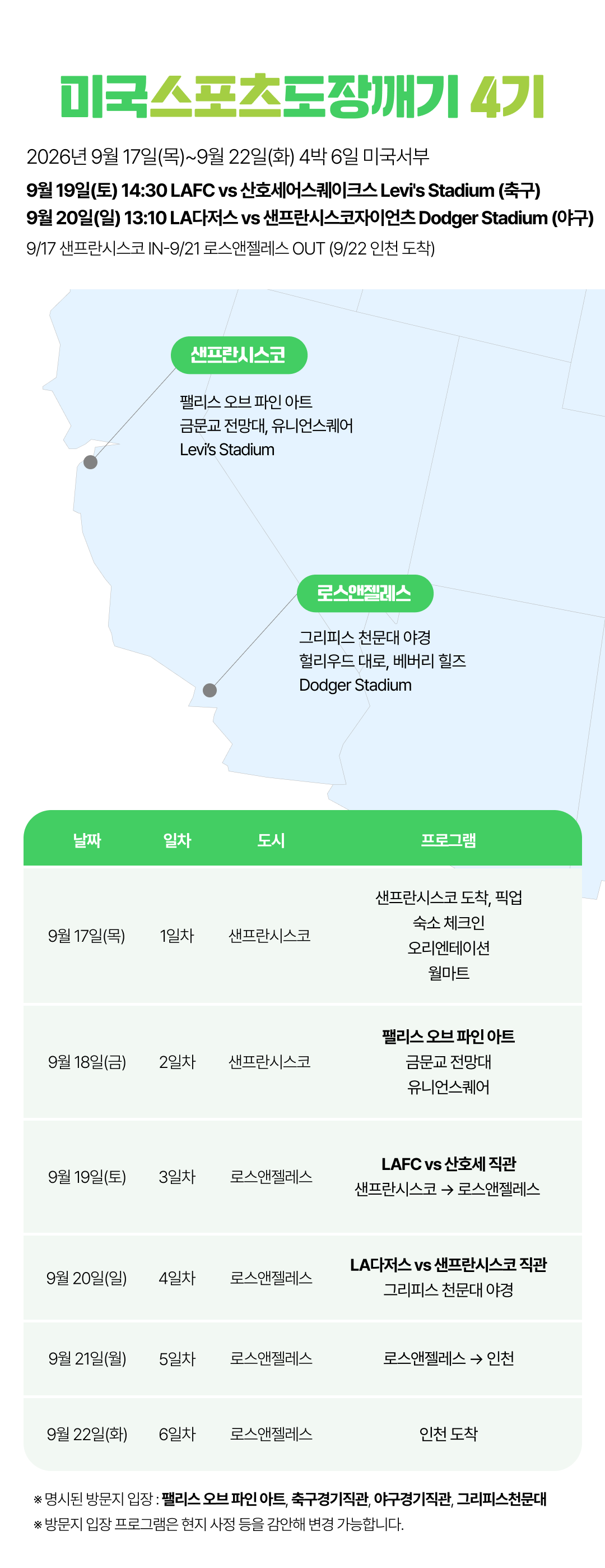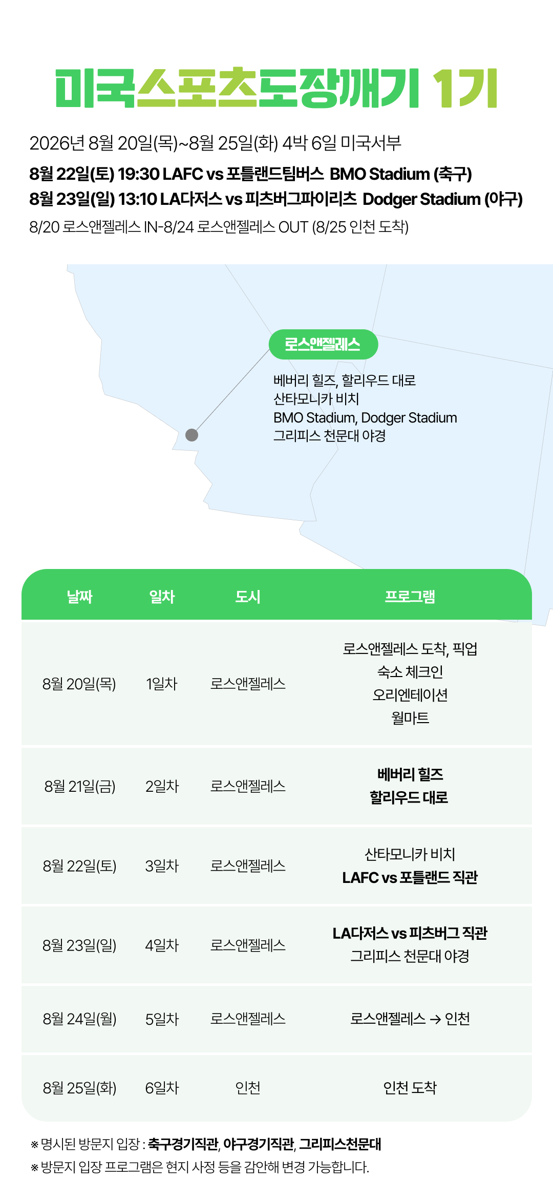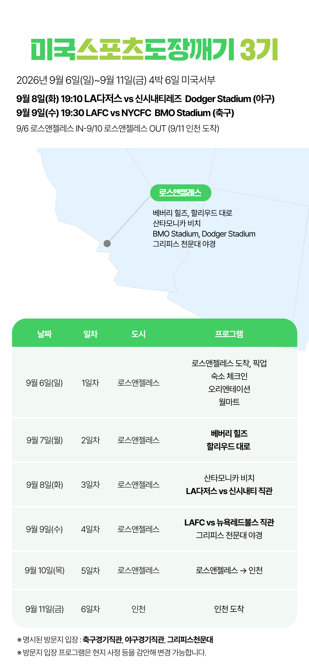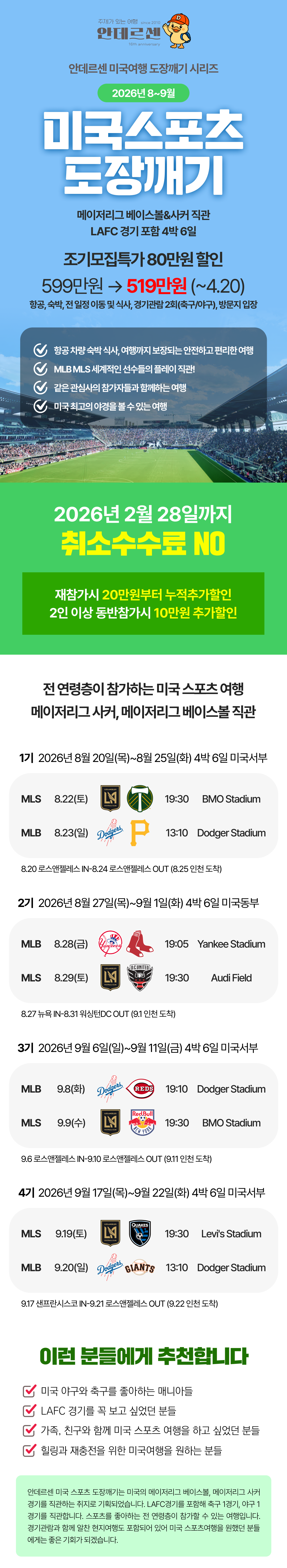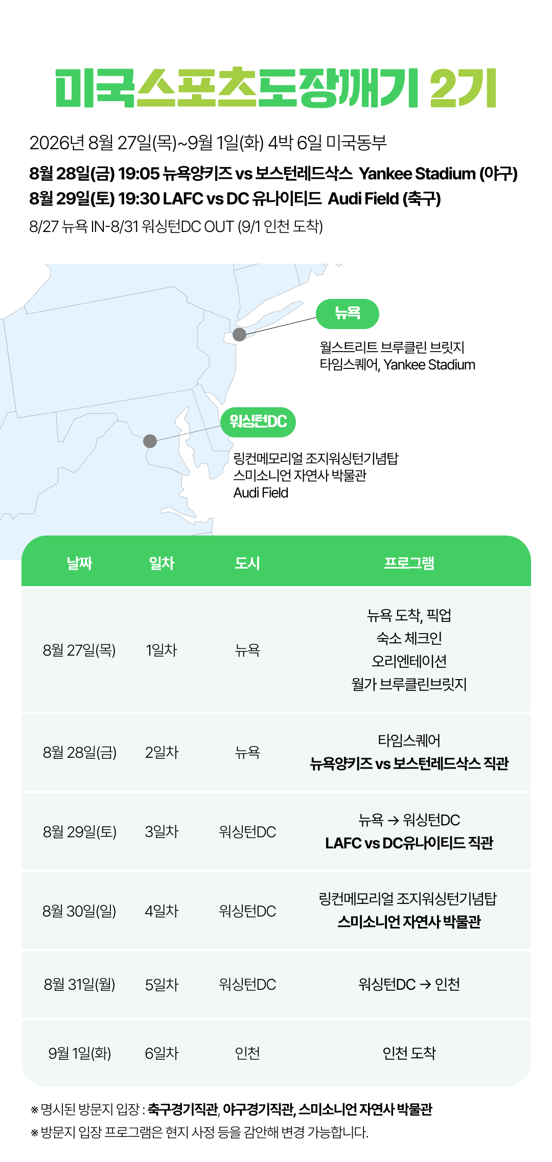 [2026년 8~9월] 미국 스포츠도장깨기