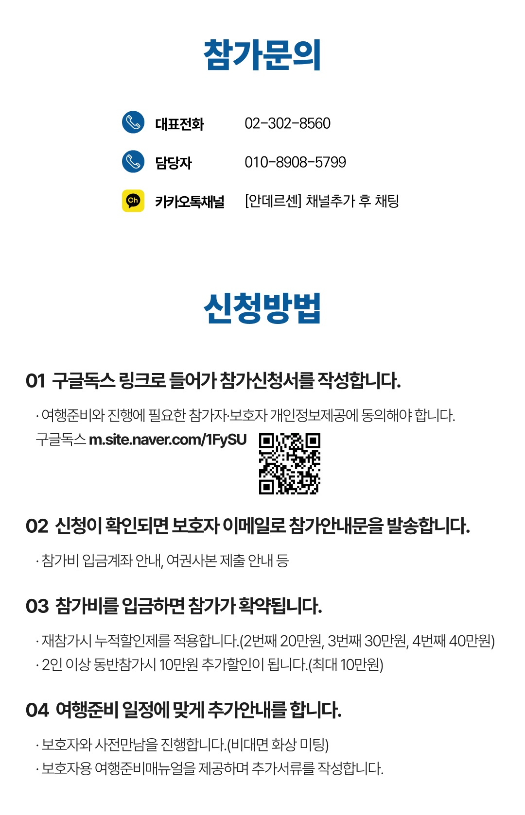 상세한 여행준비를 위해 구글 참가신청서를 작성해주셔야 합니다. 구글독스 참가신청서를 작성하지 않으면 정상적으로 예약이 접수되지 않습니다. 클릭하면 바로 구글 참가신청서로 연결됩니다.