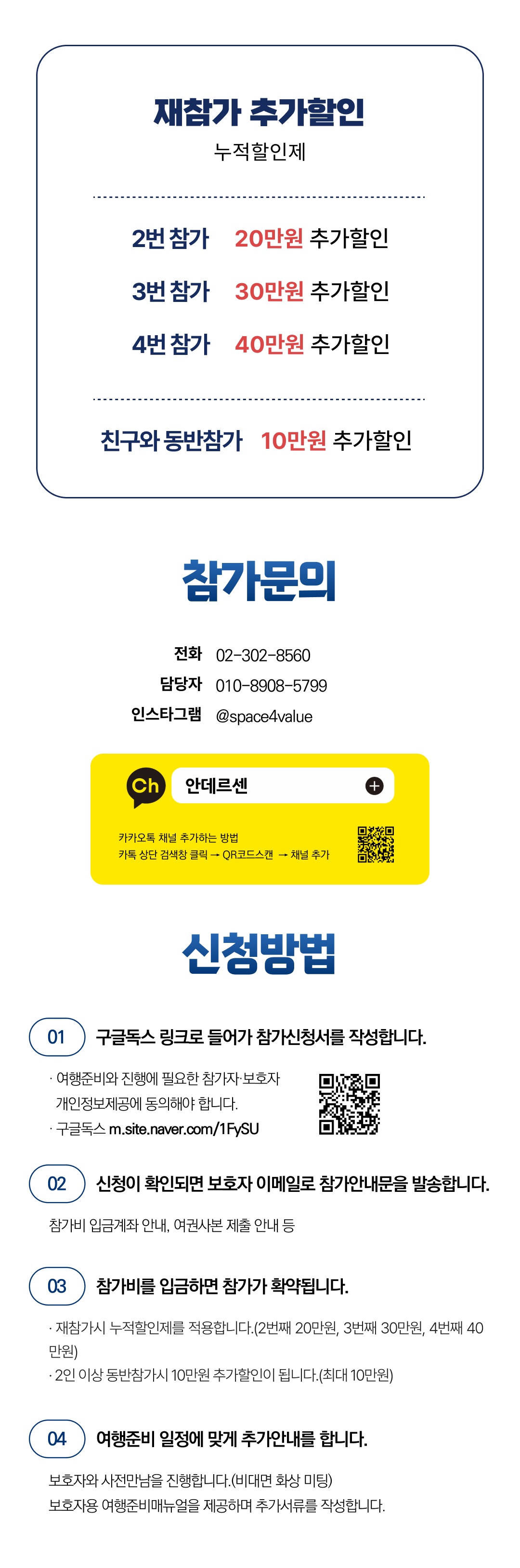상세한 여행준비를 위해 구글 참가신청서를 작성해주셔야 합니다. 구글독스 참가신청서를 작성하지 않으면 정상적으로 예약이 접수되지 않습니다. 클릭하면 바로 구글 참가신청서로 연결됩니다.