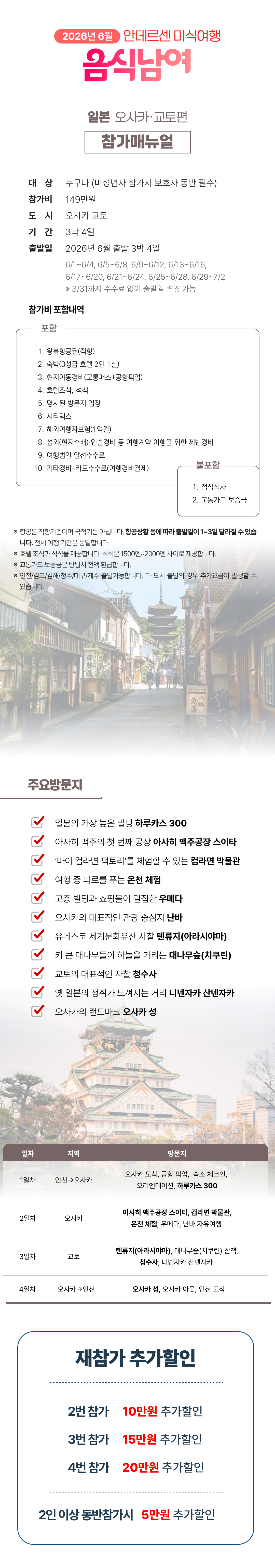 상세한 여행준비를 위해 구글 참가신청서를 작성해주셔야 합니다. 구글독스 참가신청서를 작성하지 않으면 정상적으로 예약이 접수되지 않습니다. 클릭하면 바로 구글 참가신청서로 연결됩니다.