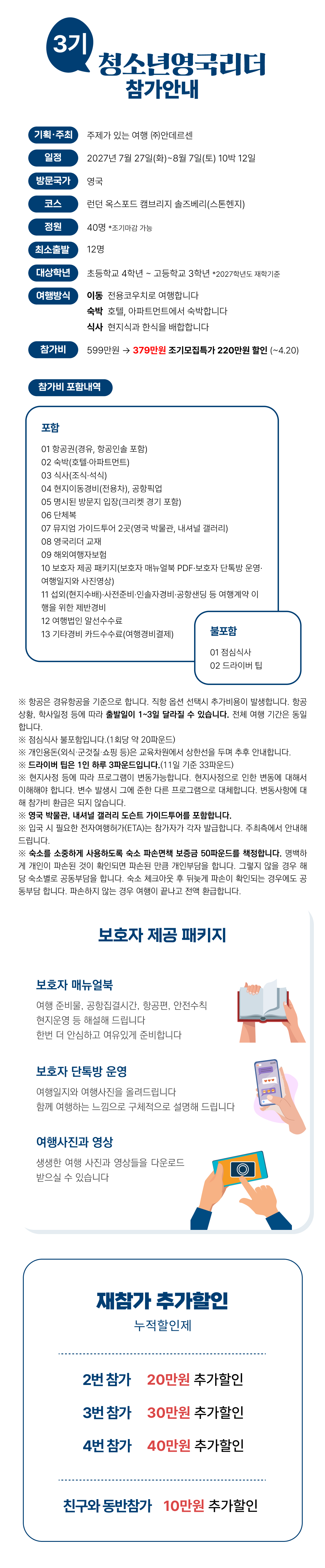 상세한 여행준비를 위해 구글 참가신청서를 작성해주셔야 합니다. 구글독스 참가신청서를 작성하지 않으면 정상적으로 예약이 접수되지 않습니다. 클릭하면 바로 구글 참가신청서로 연결됩니다.