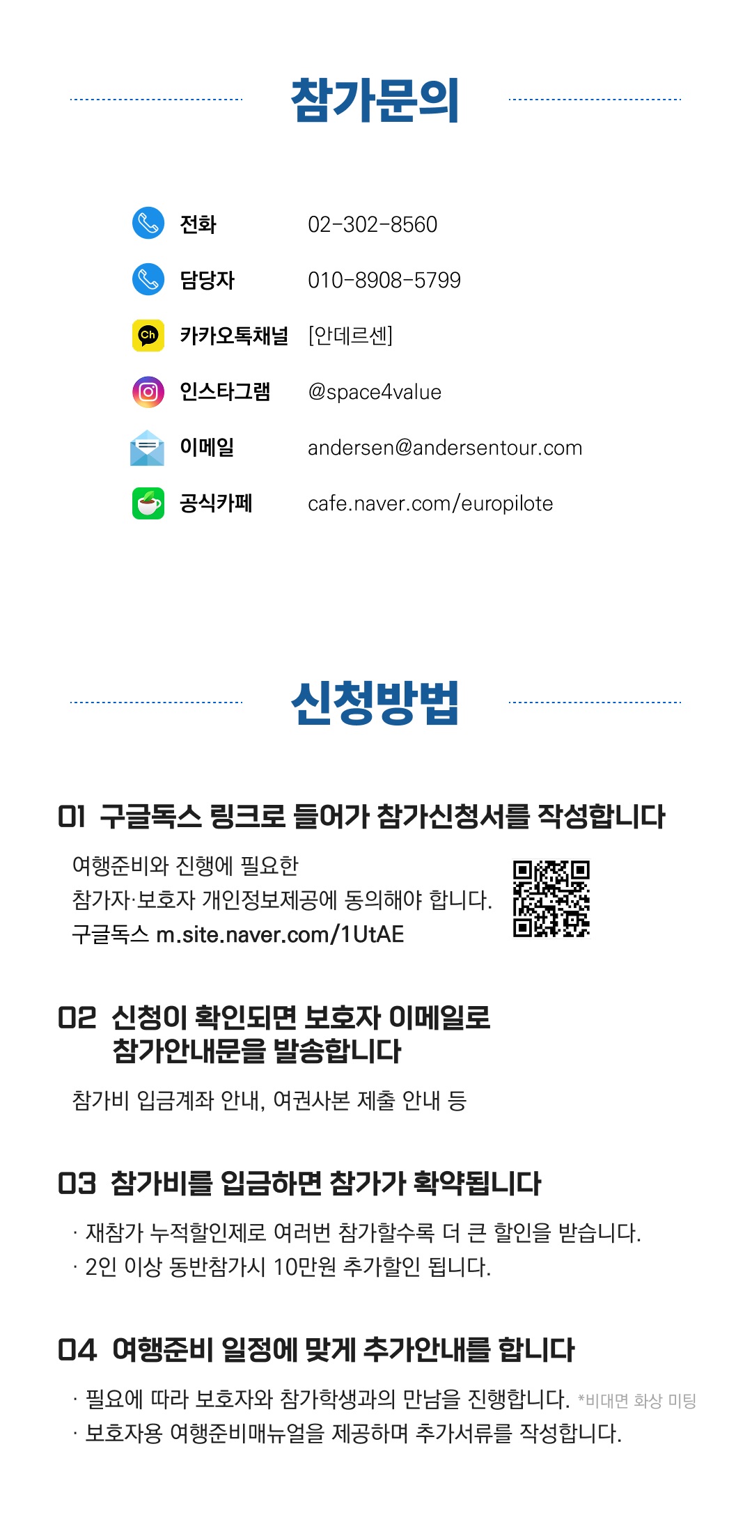 상세한 여행준비를 위해 구글 참가신청서를 작성해주셔야 합니다. 구글독스 참가신청서를 작성하지 않으면 정상적으로 예약이 접수되지 않습니다. 클릭하면 바로 구글 참가신청서로 연결됩니다.
