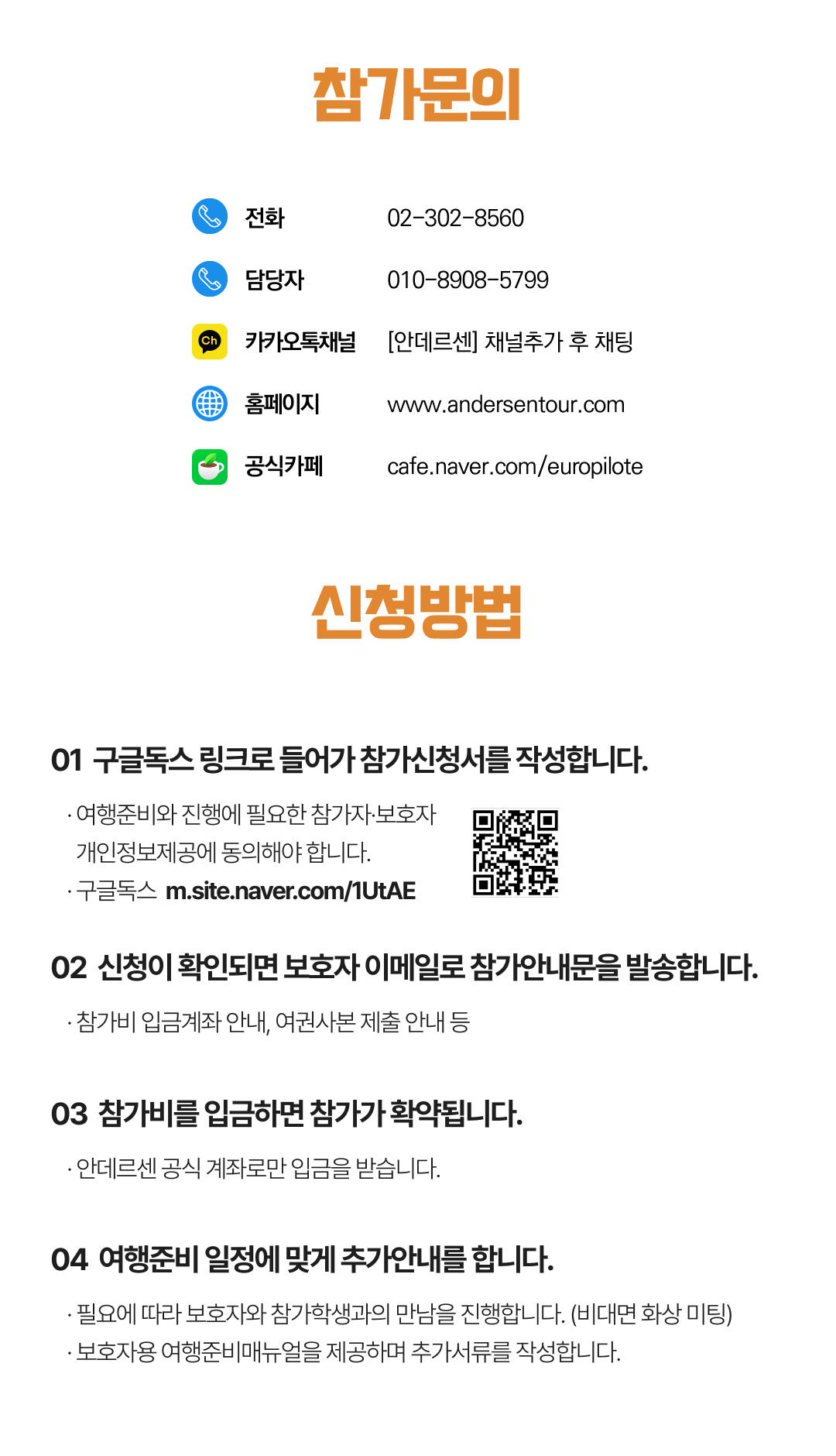 상세한 여행준비를 위해 구글 참가신청서를 작성해주셔야 합니다. 구글독스 참가신청서를 작성하지 않으면 정상적으로 예약이 접수되지 않습니다. 클릭하면 바로 구글 참가신청서로 연결됩니다.