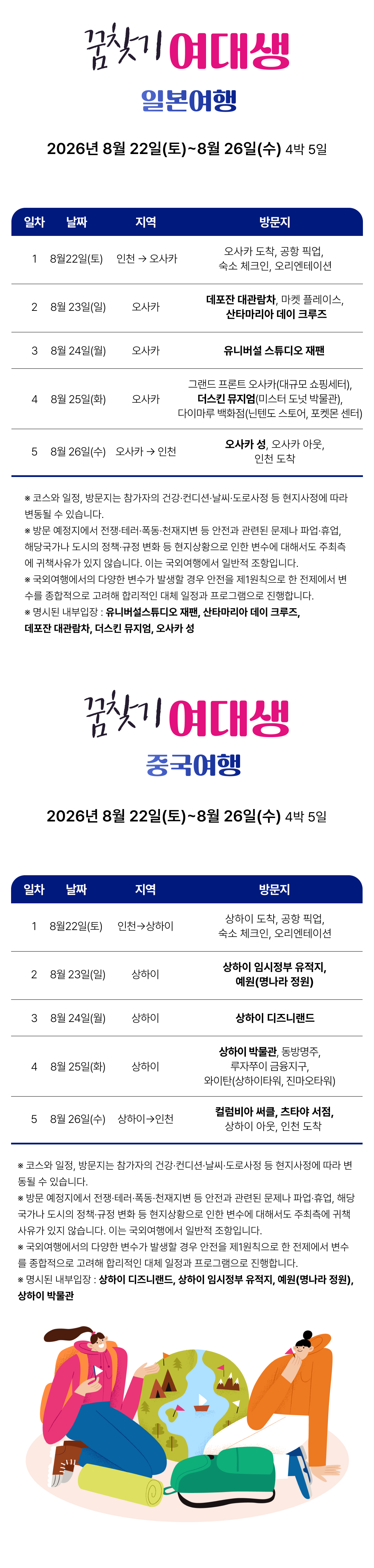[2026.8] 꿈찾기 여대생 일본/중국여행