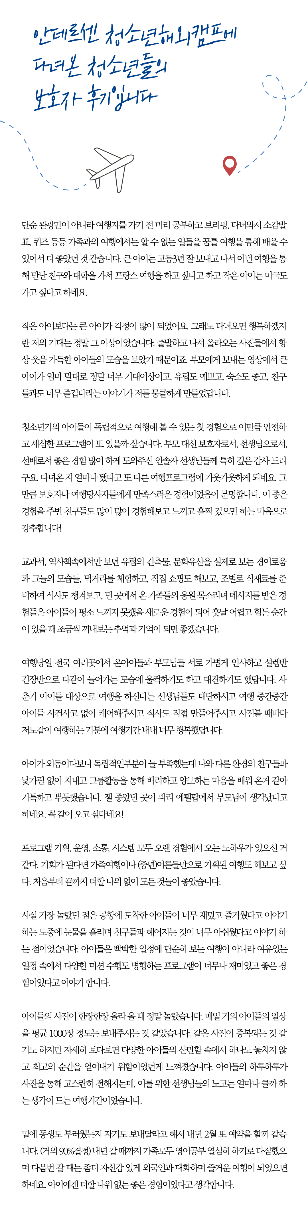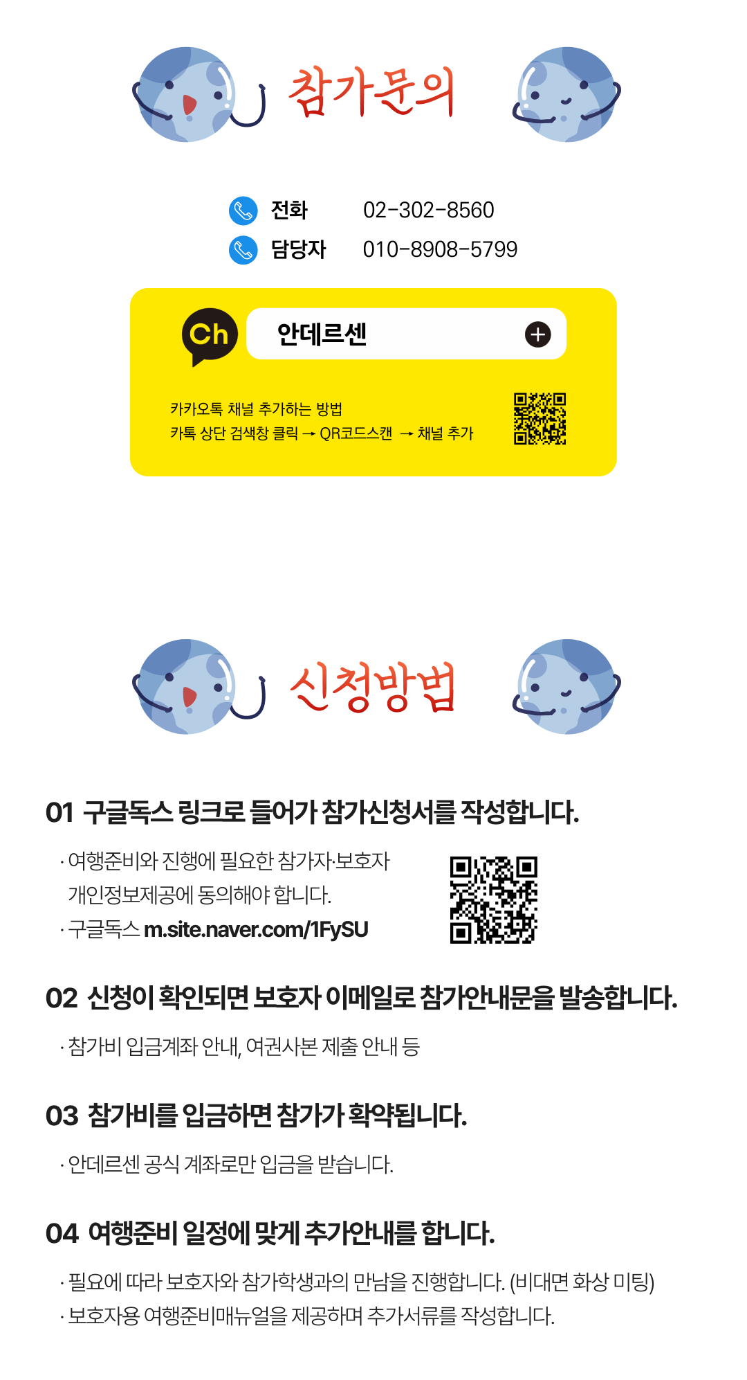 상세한 여행준비를 위해 구글 참가신청서를 작성해주셔야 합니다. 구글독스 참가신청서를 작성하지 않으면 정상적으로 예약이 접수되지 않습니다. 클릭하면 바로 구글 참가신청서로 연결됩니다.