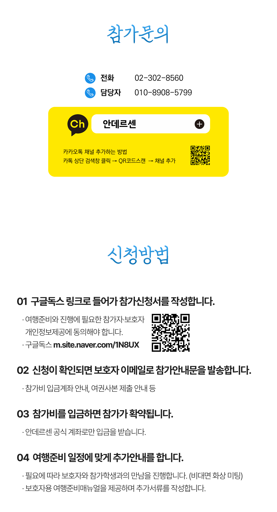 상세한 여행준비를 위해 구글 참가신청서를 작성해주셔야 합니다. 구글독스 참가신청서를 작성하지 않으면 정상적으로 예약이 접수되지 않습니다. 클릭하면 바로 구글 참가신청서로 연결됩니다.