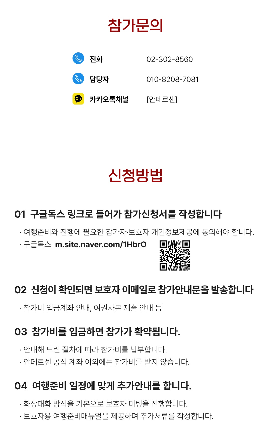 상세한 여행준비를 위해 구글 참가신청서를 작성해주셔야 합니다. 구글독스 참가신청서를 작성하지 않으면 정상적으로 예약이 접수되지 않습니다. 클릭하면 바로 구글 참가신청서로 연결됩니다.