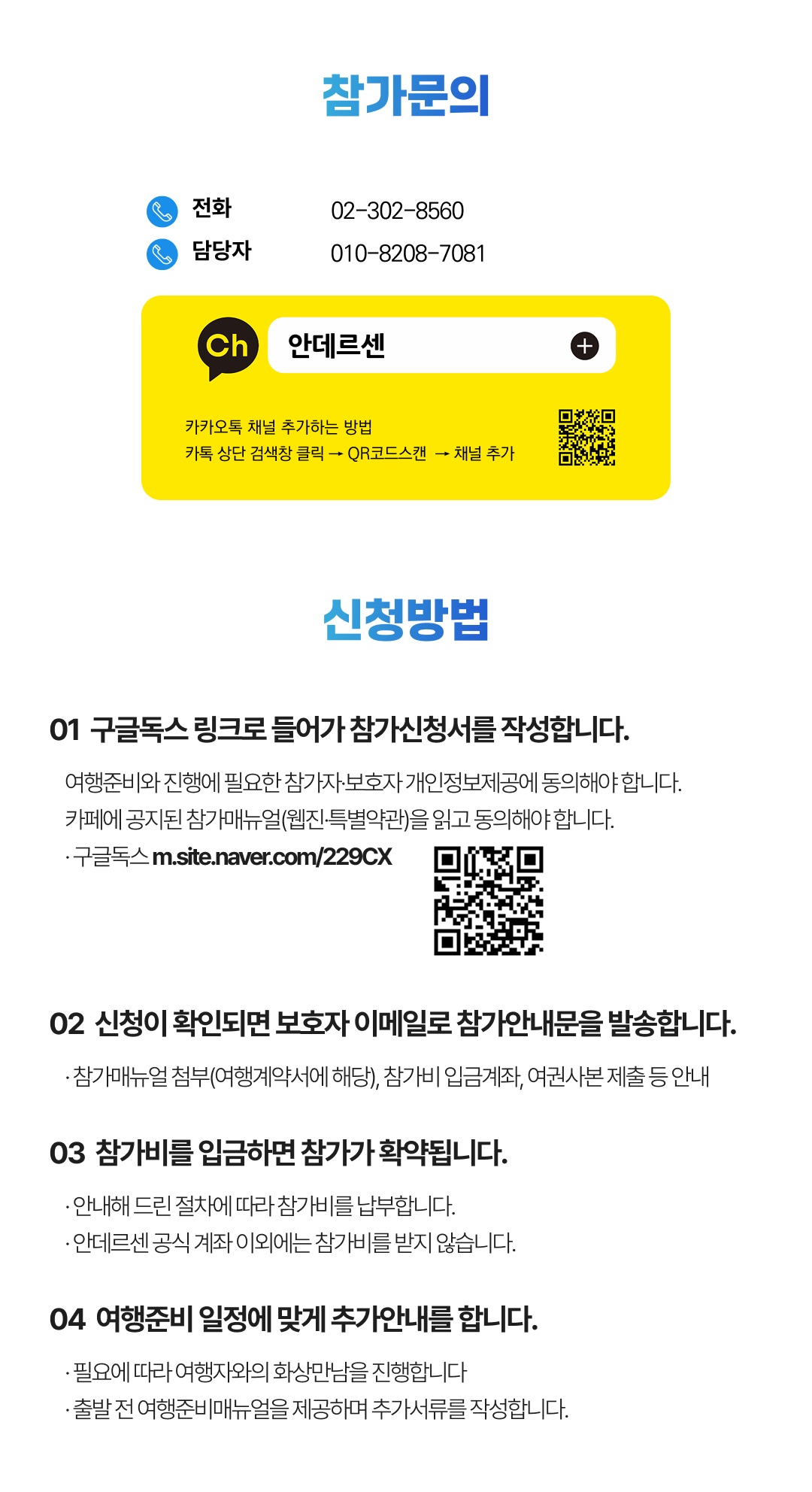 상세한 여행준비를 위해 구글 참가신청서를 작성해주셔야 합니다. 구글독스 참가신청서를 작성하지 않으면 정상적으로 예약이 접수되지 않습니다. 클릭하면 바로 구글 참가신청서로 연결됩니다.