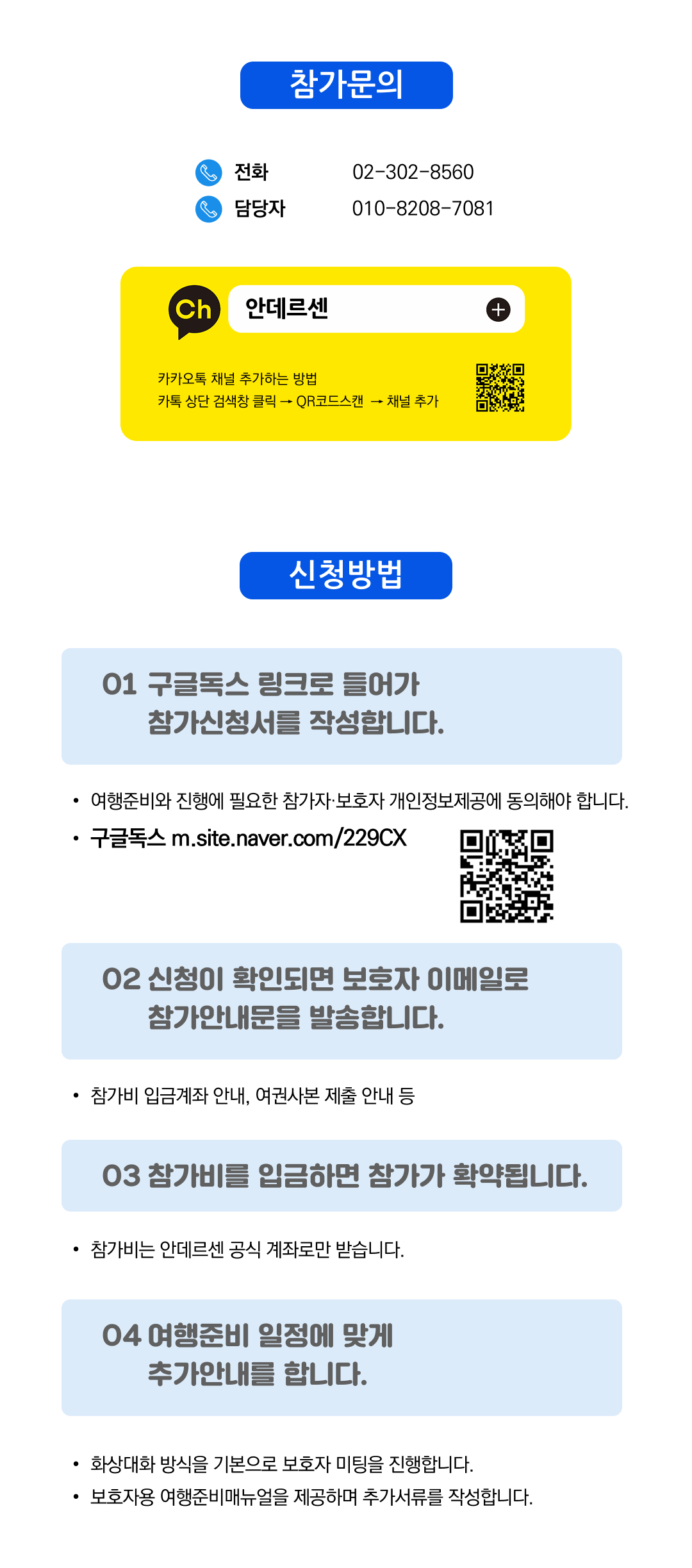 상세한 여행준비를 위해 구글 참가신청서를 작성해주셔야 합니다. 구글독스 참가신청서를 작성하지 않으면 정상적으로 예약이 접수되지 않습니다. 클릭하면 바로 구글 참가신청서로 연결됩니다.