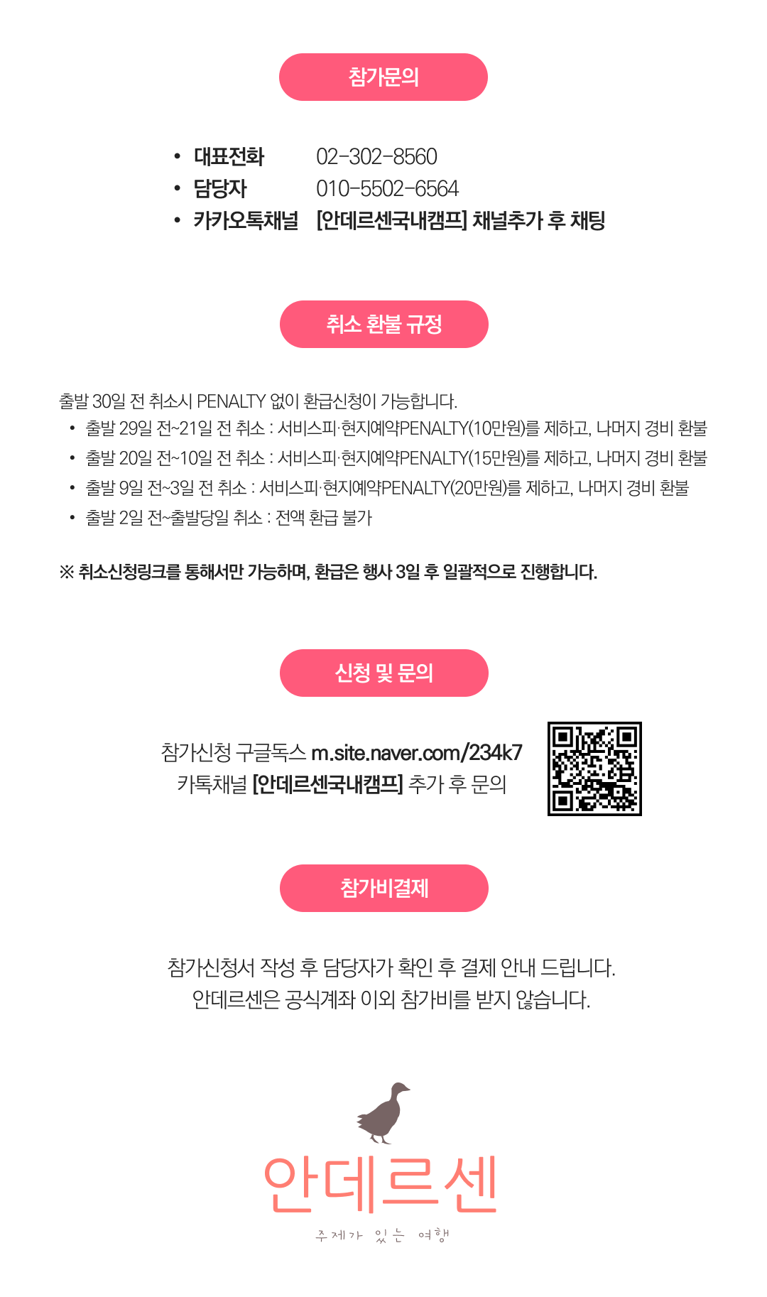 상세한 여행준비를 위해 구글 참가신청서를 작성해주셔야 합니다. 구글독스 참가신청서를 작성하지 않으면 정상적으로 예약이 접수되지 않습니다. 클릭하면 바로 구글 참가신청서로 연결됩니다.