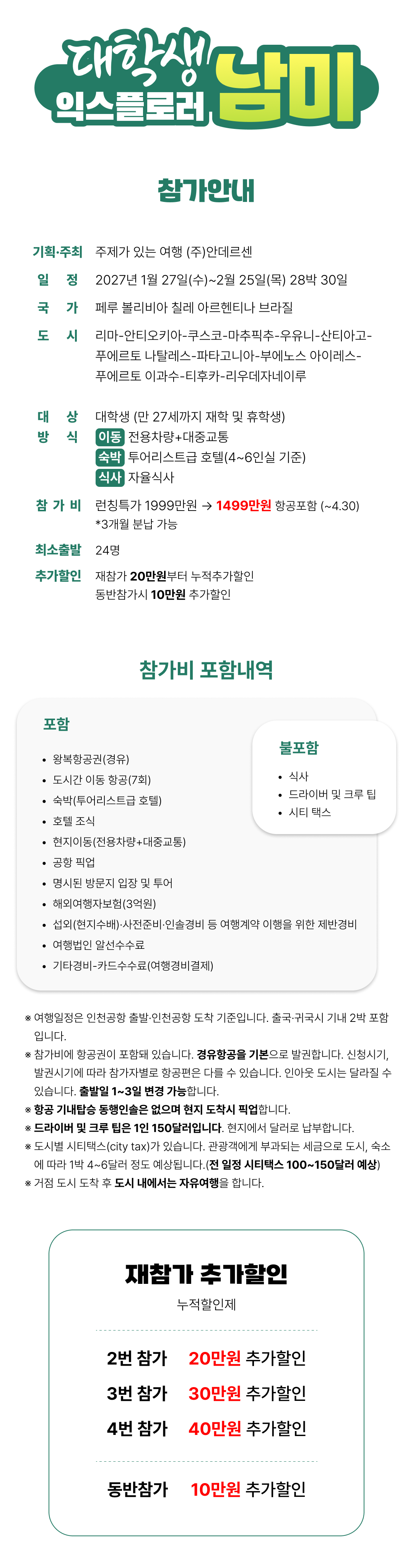 [2027.1~2] 대학생 익스플로러남미 30일간의 남미일주