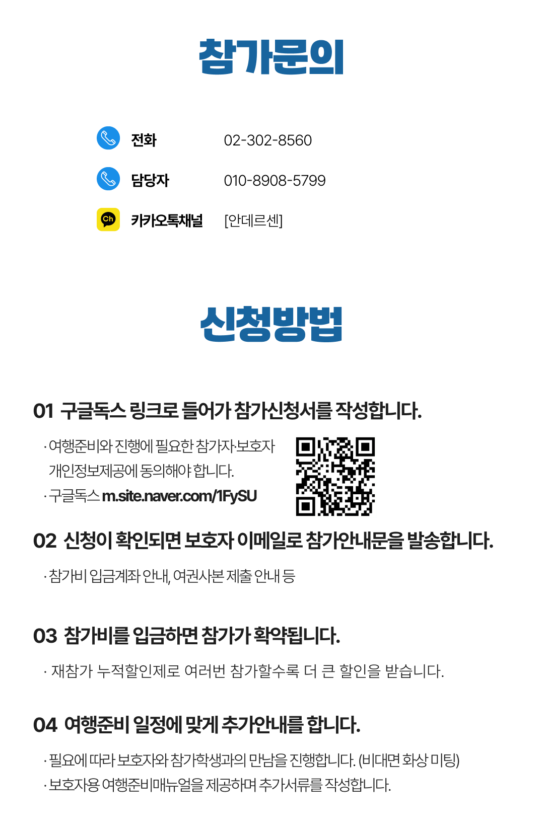 상세한 여행준비를 위해 구글 참가신청서를 작성해주셔야 합니다. 구글독스 참가신청서를 작성하지 않으면 정상적으로 예약이 접수되지 않습니다. 클릭하면 바로 구글 참가신청서로 연결됩니다.