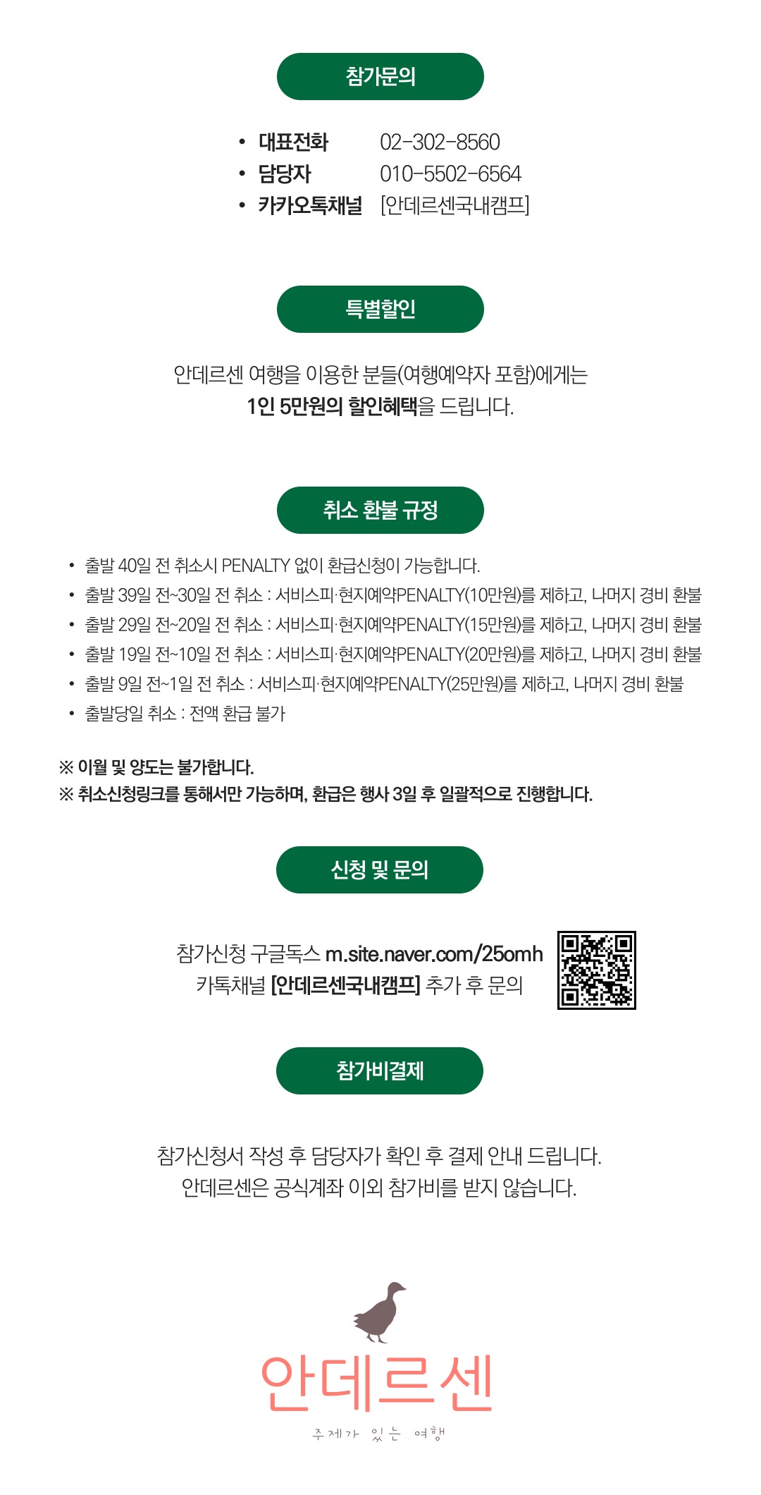 상세한 여행준비를 위해 구글 참가신청서를 작성해주셔야 합니다. 구글독스 참가신청서를 작성하지 않으면 정상적으로 예약이 접수되지 않습니다. 클릭하면 바로 구글 참가신청서로 연결됩니다.