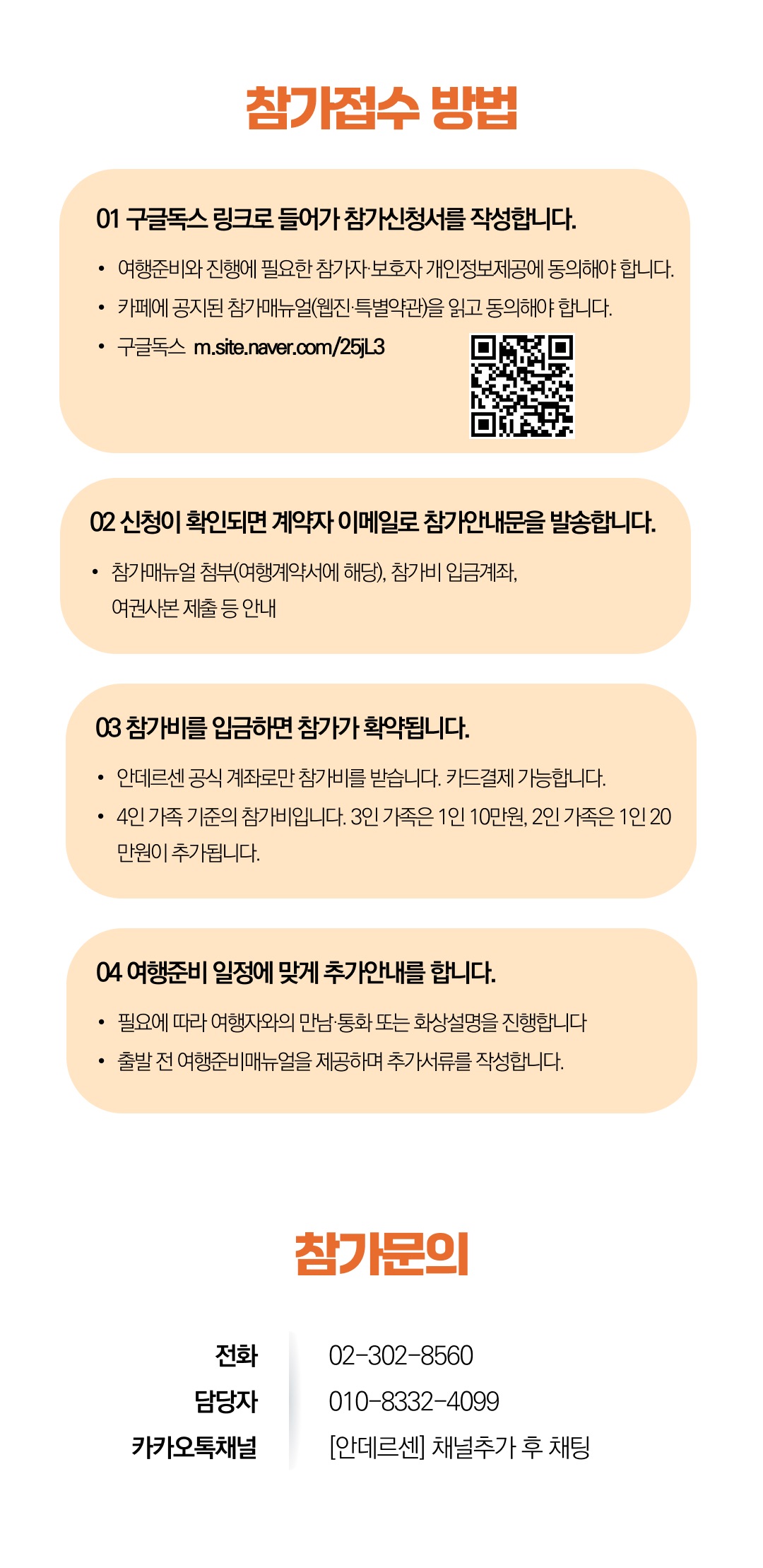 상세한 여행준비를 위해 구글 참가신청서를 작성해주셔야 합니다. 구글독스 참가신청서를 작성하지 않으면 정상적으로 예약이 접수되지 않습니다. 클릭하면 바로 구글 참가신청서로 연결됩니다.