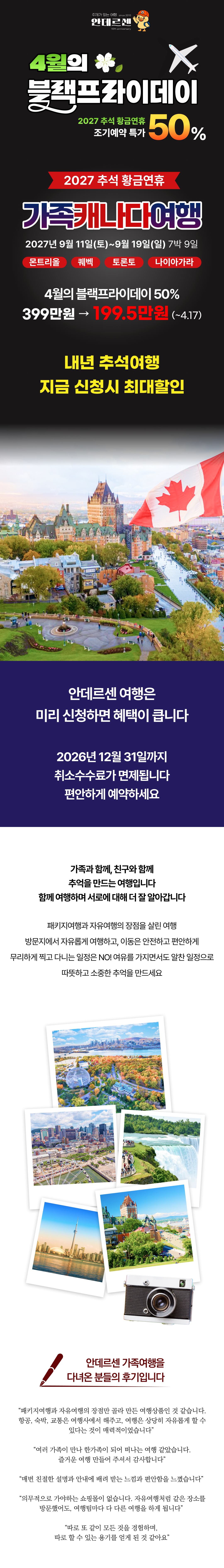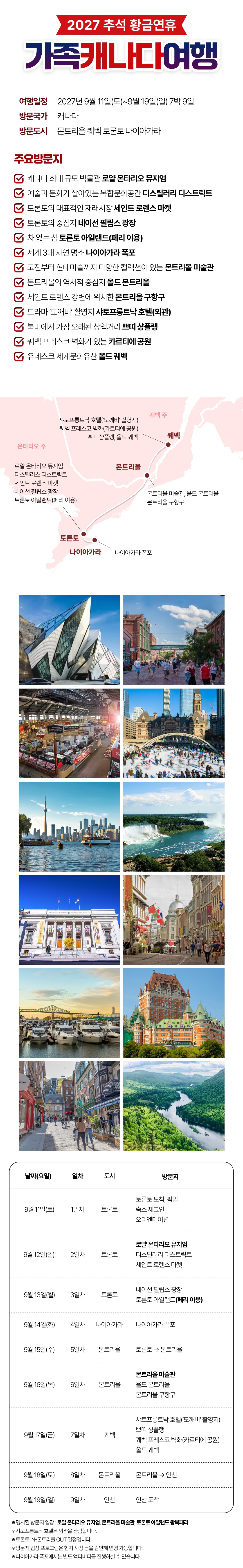 [4월의 블프] 2027.9 추석 가족캐나다여행