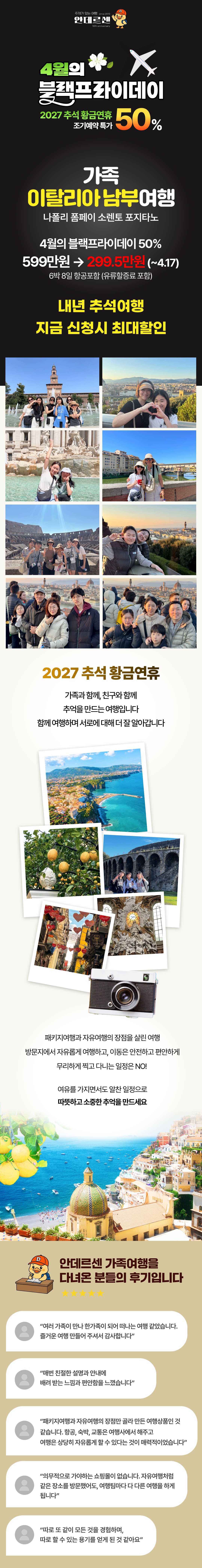 [4월의 블프] 2027.9 추석 가족이탈리아남부여행