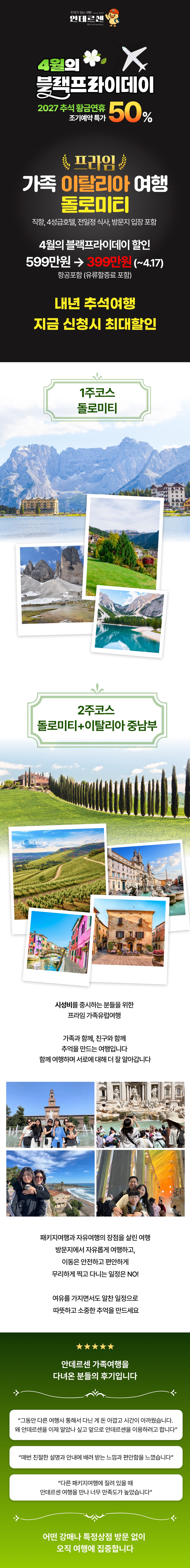 [4월의 블프] 2027.9 추석 프라임 가족이탈리아/돌로미티 여행