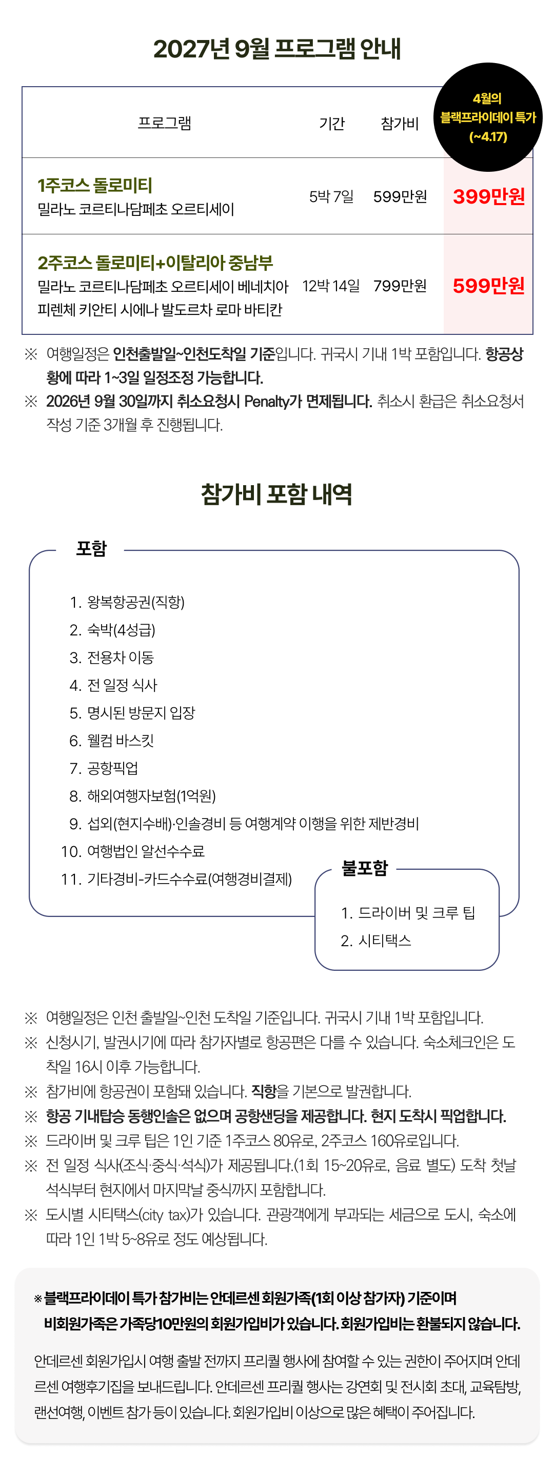 [2027.9] 추석 프라임 가족 이탈리아/돌로미티 여행