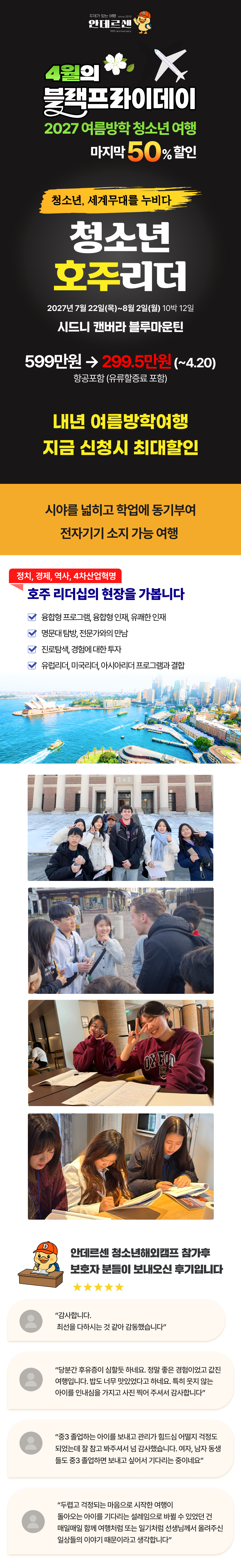 [4월의 블프] 2027.7~8 청소년 호주리더
