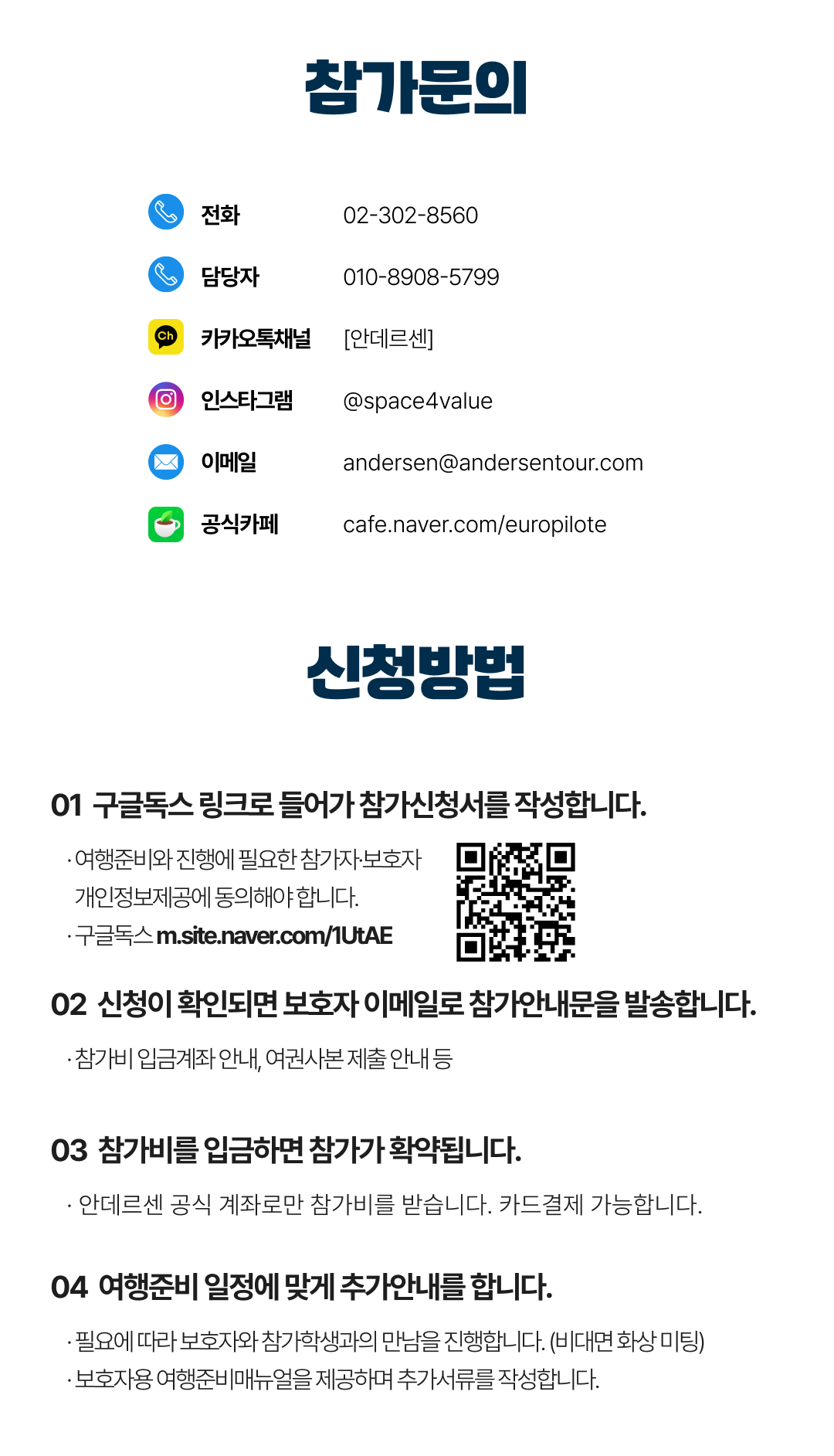 상세한 여행준비를 위해 구글 참가신청서를 작성해주셔야 합니다. 구글독스 참가신청서를 작성하지 않으면 정상적으로 예약이 접수되지 않습니다. 클릭하면 바로 구글 참가신청서로 연결됩니다.