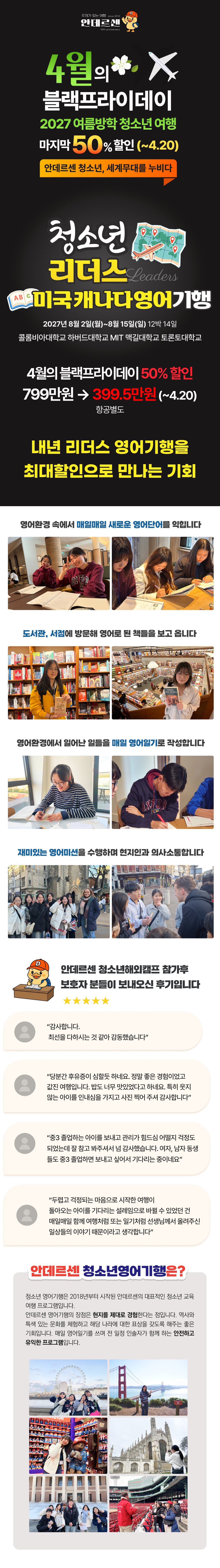 [4월의 블프] 2027.8 청소년 리더스 미국·캐나다 영어기행