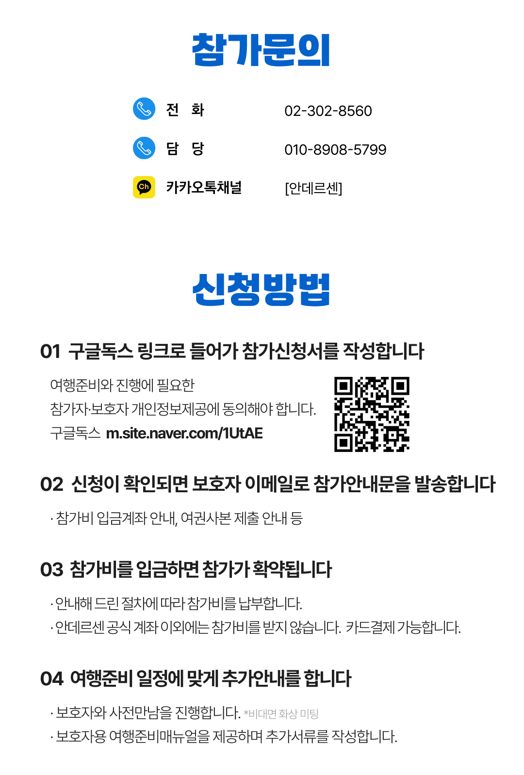 상세한 여행준비를 위해 구글 참가신청서를 작성해주셔야 합니다. 구글독스 참가신청서를 작성하지 않으면 정상적으로 예약이 접수되지 않습니다. 클릭하면 바로 구글 참가신청서로 연결됩니다.
