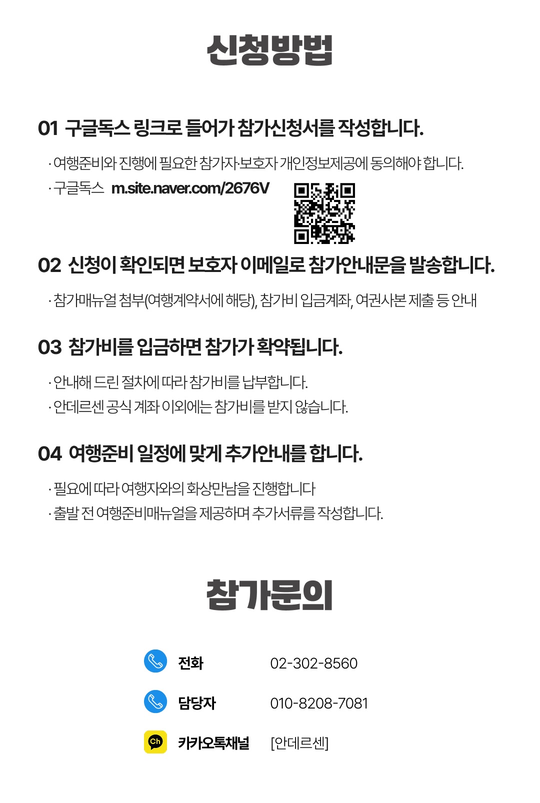 상세한 여행준비를 위해 구글 참가신청서를 작성해주셔야 합니다. 구글독스 참가신청서를 작성하지 않으면 정상적으로 예약이 접수되지 않습니다. 클릭하면 바로 구글 참가신청서로 연결됩니다.