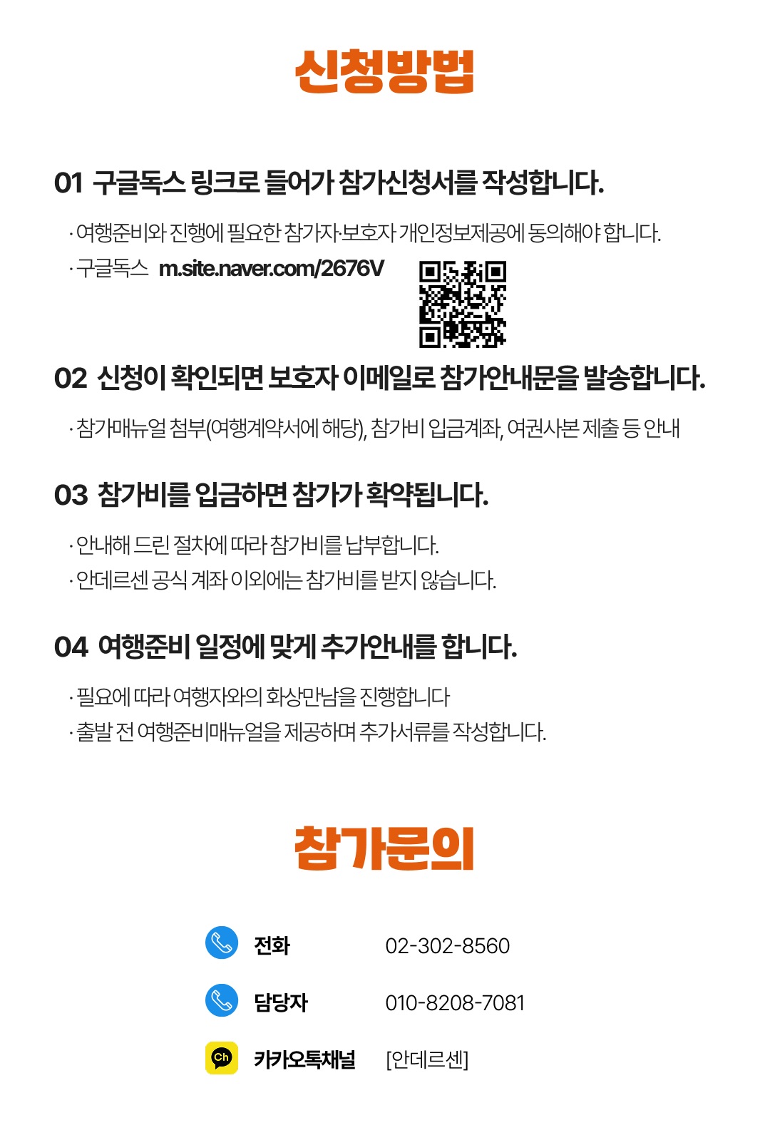 상세한 여행준비를 위해 구글 참가신청서를 작성해주셔야 합니다. 구글독스 참가신청서를 작성하지 않으면 정상적으로 예약이 접수되지 않습니다. 클릭하면 바로 구글 참가신청서로 연결됩니다.