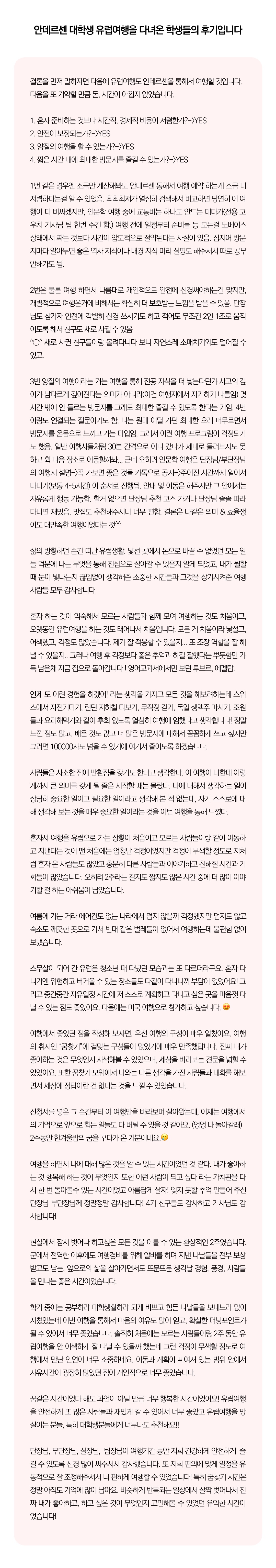 상세한 여행준비를 위해 구글 참가신청서를 작성해주셔야 합니다. 구글독스 참가신청서를 작성하지 않으면 정상적으로 예약이 접수되지 않습니다. 클릭하면 바로 구글 참가신청서로 연결됩니다.