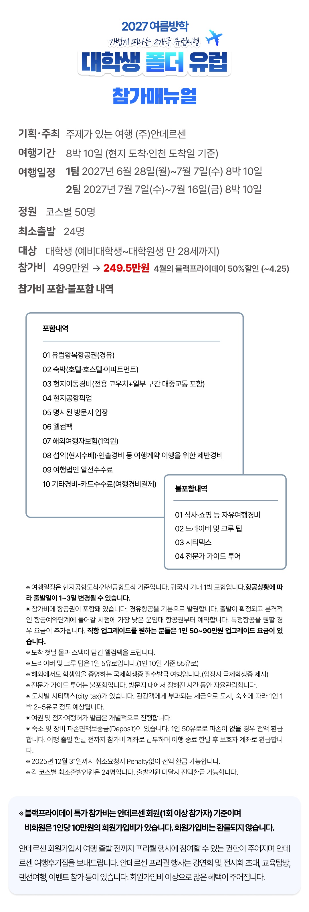 상세한 여행준비를 위해 구글 참가신청서를 작성해주셔야 합니다. 구글독스 참가신청서를 작성하지 않으면 정상적으로 예약이 접수되지 않습니다. 클릭하면 바로 구글 참가신청서로 연결됩니다.