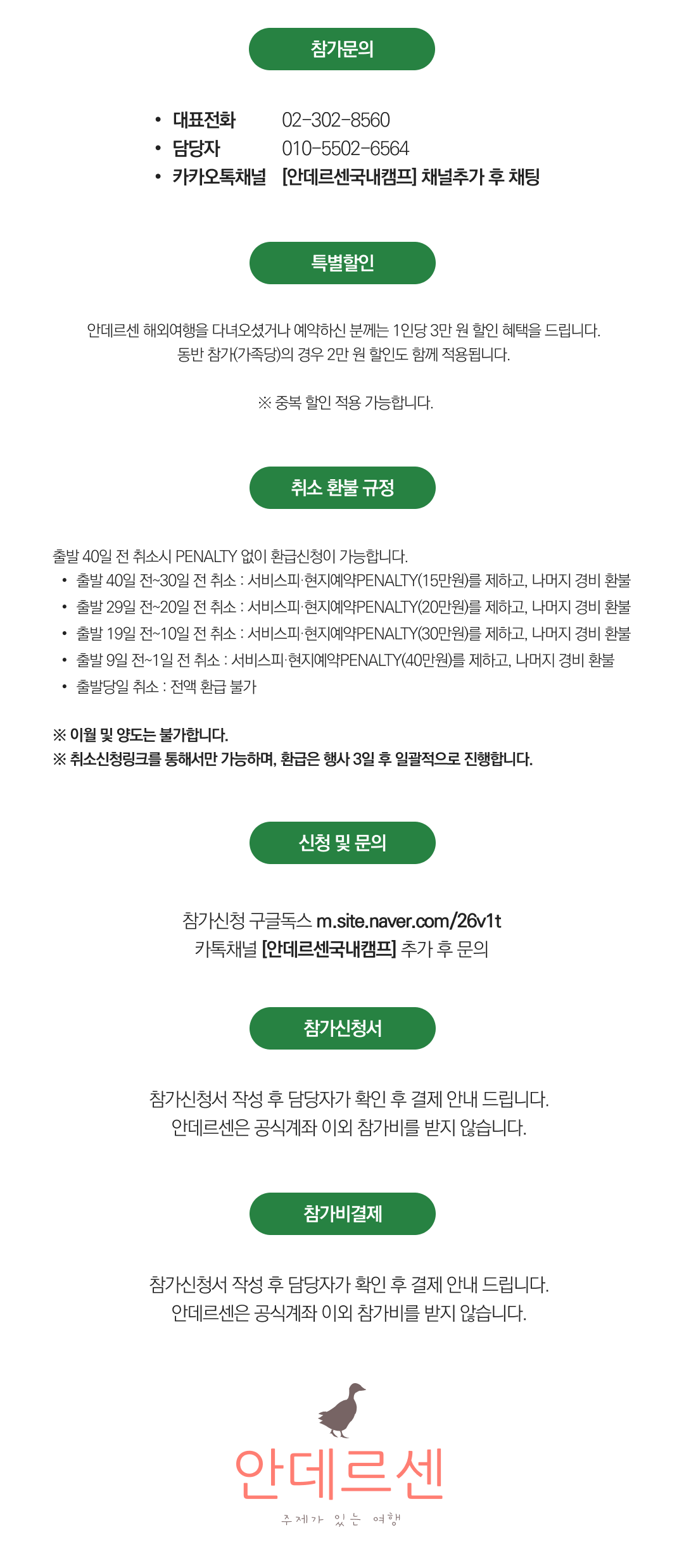 상세한 여행준비를 위해 구글 참가신청서를 작성해주셔야 합니다. 구글독스 참가신청서를 작성하지 않으면 정상적으로 예약이 접수되지 않습니다. 클릭하면 바로 구글 참가신청서로 연결됩니다.