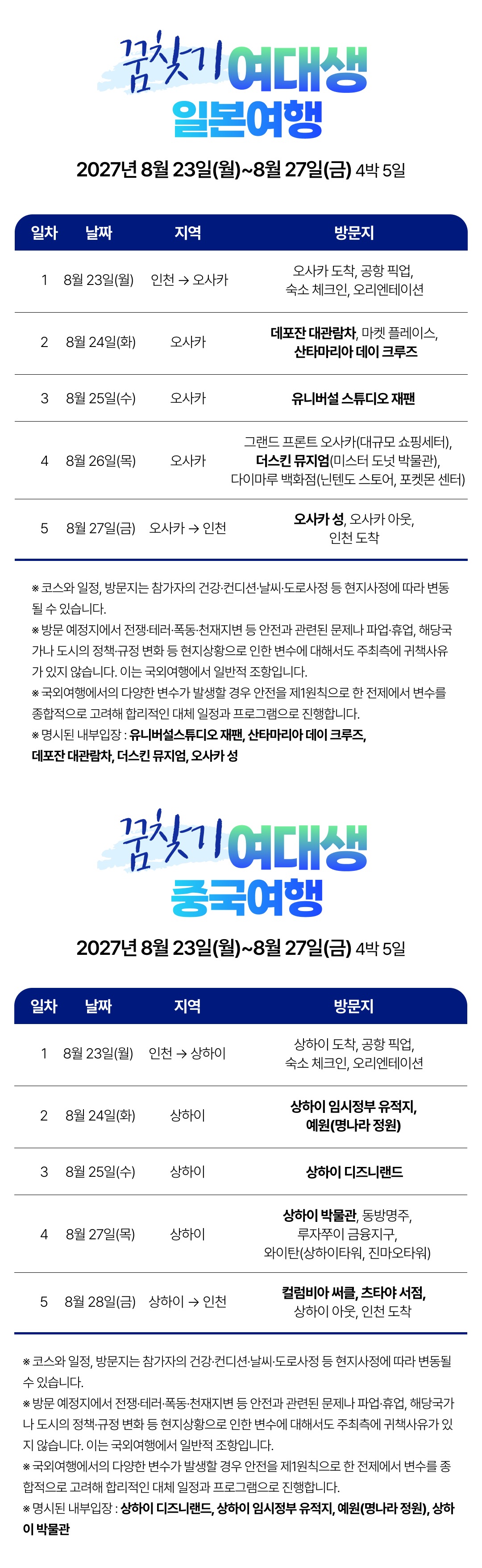 [2027.8] 꿈찾기 여대생 일본/중국여행